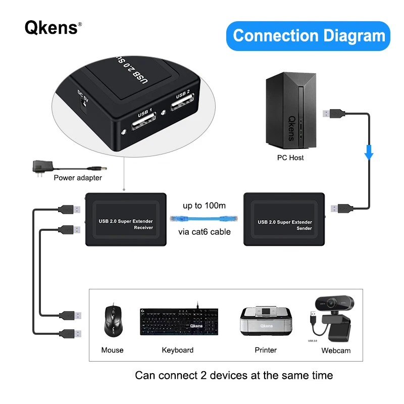 Comprar Extensor Super 2 USB 2,0 a través de Cable de red Ethernet RJ45 Cat6, compatible con MAC Win7/8/10 Win 11, cámara web, ratón, teclado y impresora