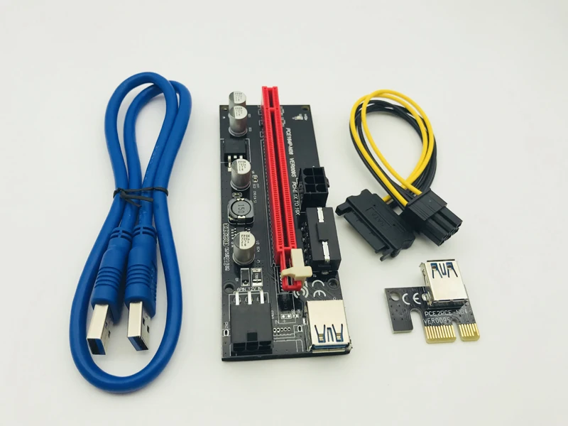 Comprar Extensor de tarjeta elevadora USB 100 SATA, Cable de alimentación macho a 6 pines para minería de Bitcoin BTC, 009S PCI-E Express 1X a 16x, 3,0 Uds.