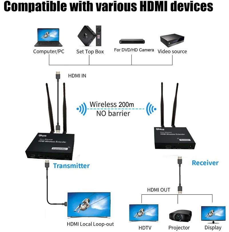 Comprar Extensor de transmisión inalámbrica, transmisor y receptor de vídeo HDMI 200 P Vs USB, para cámara extensor KVM, PC y TV, 1080 M