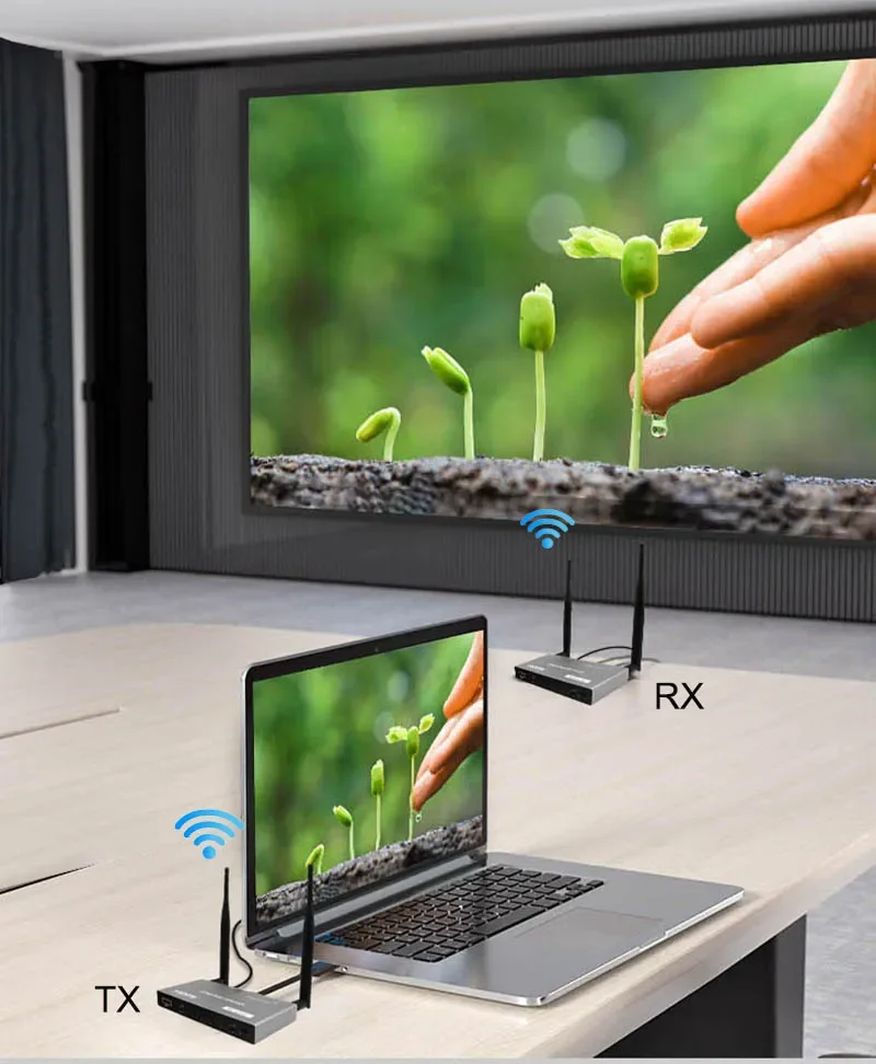 Y fuerte capacidad anti-interferencia. TX admite bucle de salida local HDMI; también admite control remoto por infrarrojos para