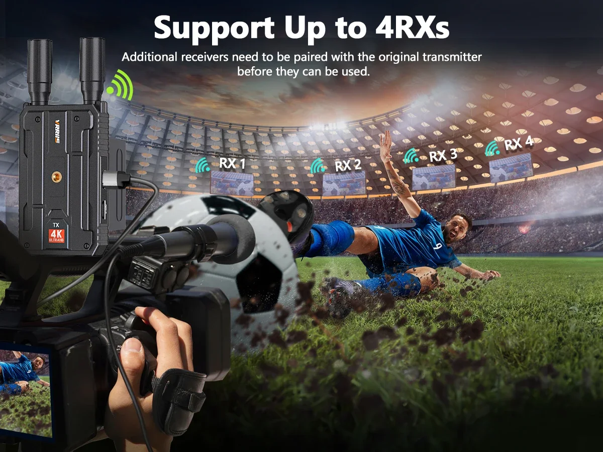 Distancia de transmisión de 1 TX a 4 RX: 164 pies/50 m;