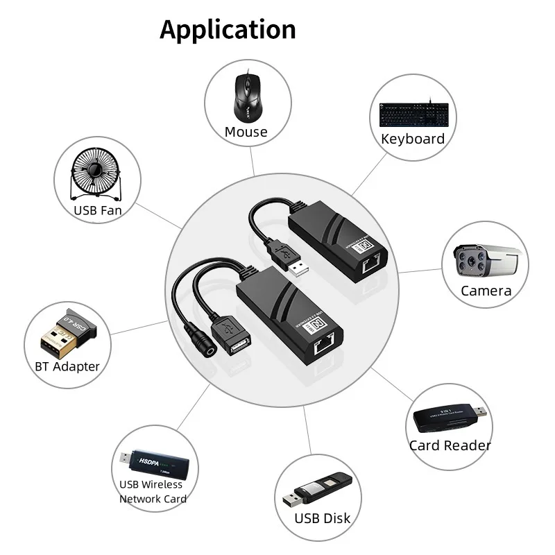 Comprar Extensor USB 2.0 a RJ45 con adaptador de corriente Conexiones de cable de extensión Ethernet de hasta 100 m para teclado de ratón de cámara