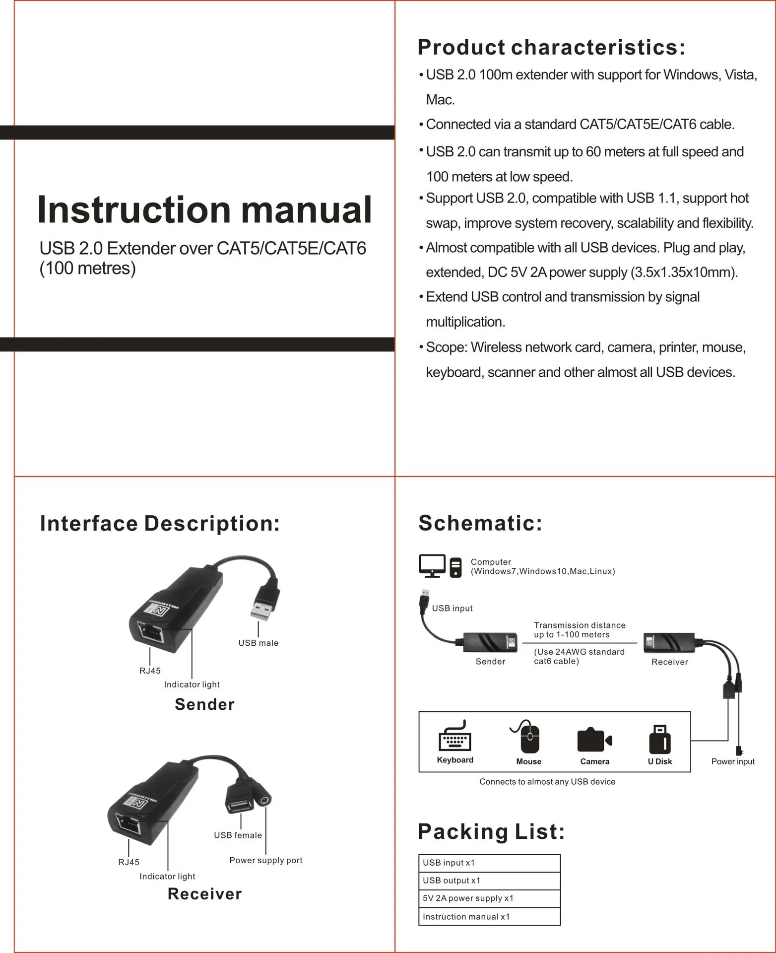 3.Alta compatibilidad: USB a través de Ethernet admite sistemas operativos: Windows, MacOS, Vista, Linux; Alta compatibilidad con dispositivos periféricos USB 1.1 y USB 2.0.USB2.0 de alta velocidad (480 Mbps).