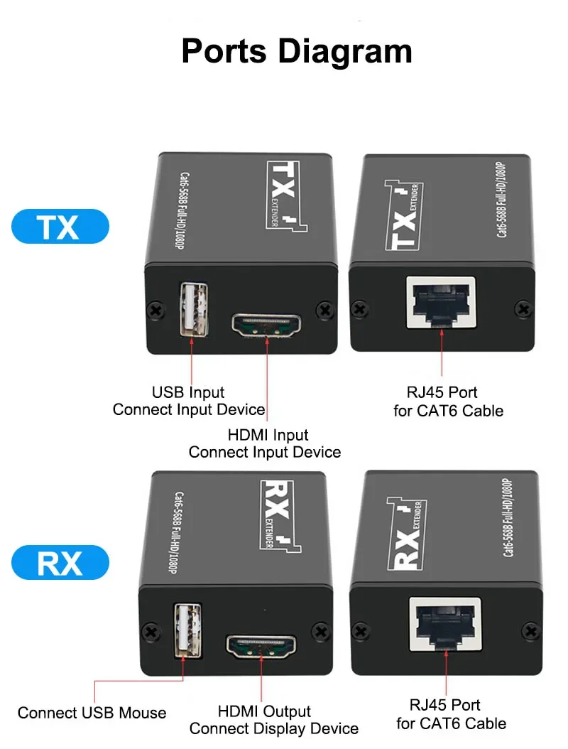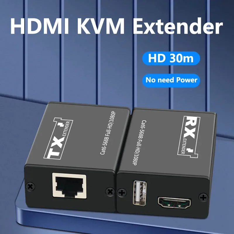 Comprar Extensor USB KVM HDMI de 30M sobre Cable de red Cat6, convertidor Ethernet HDMI a Rj45 para cámara NVR DVR a Monitor de TV para ratón de PC