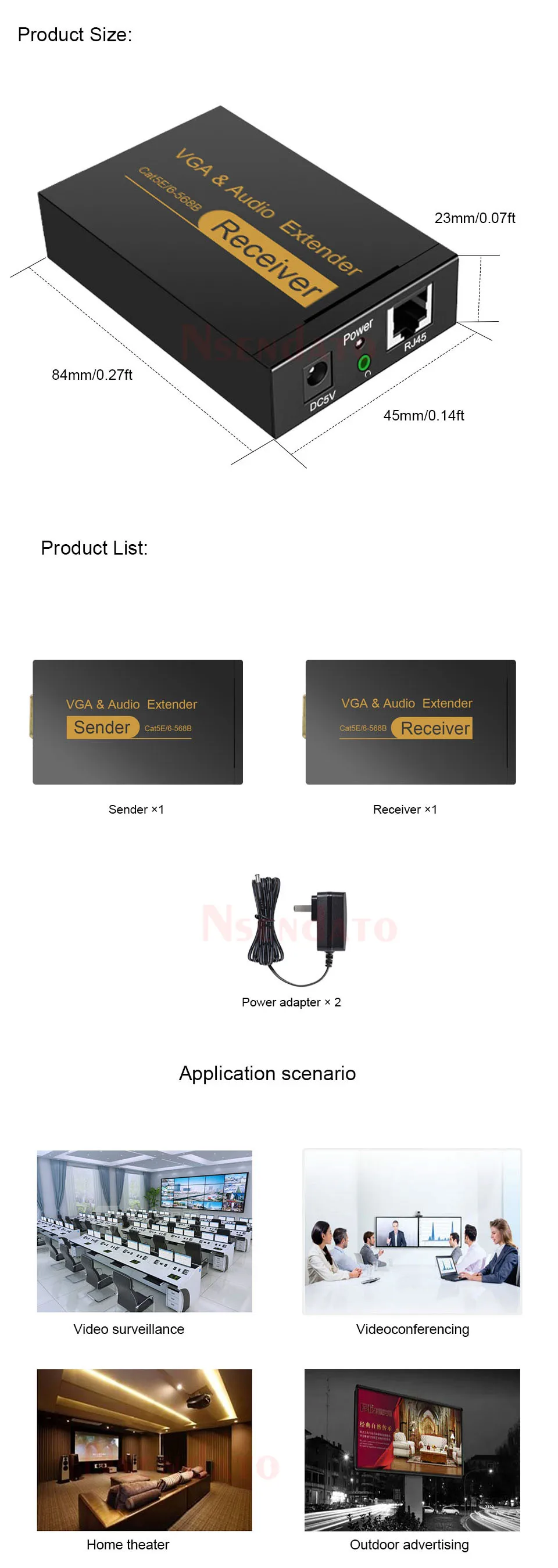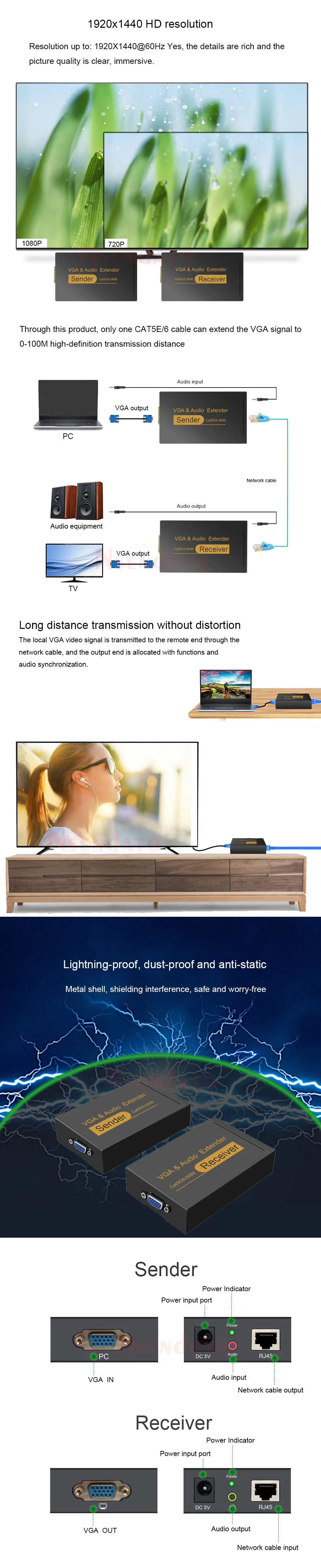 Comprar Extensor VGA de 1080P, receptor emisor de 100m con Audio sobre Cat 5e/6 RJ45, adaptador ethernet, enchufe de la UE y EE. UU. Para monitores, proyectores, HDTV