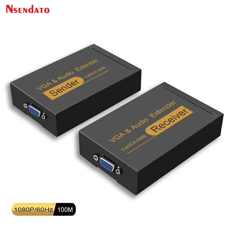 Comprar Extensor VGA de 1080P, receptor emisor de 100m con Audio sobre Cat 5e/6 RJ45, adaptador ethernet, enchufe de la UE y EE. UU. Para monitores, proyectores, HDTV