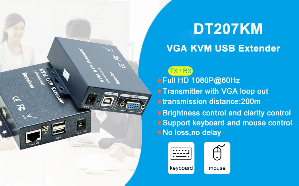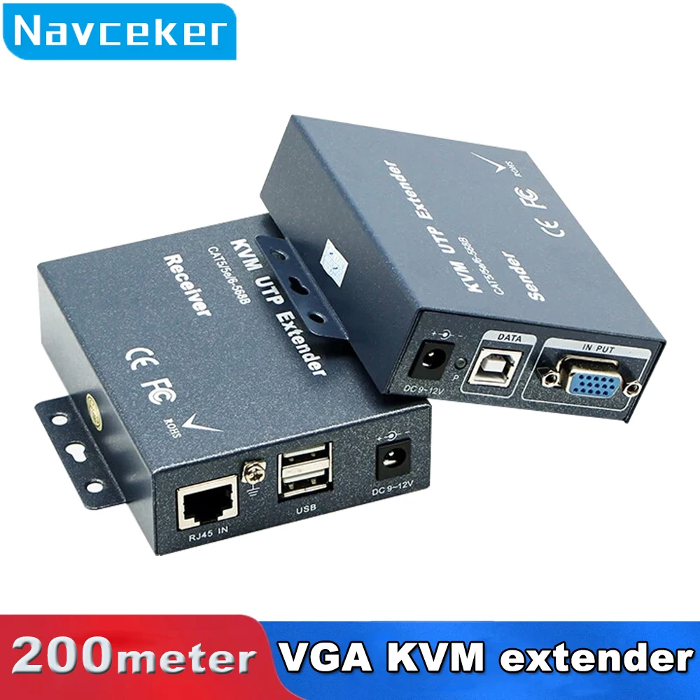 Comprar Extensor VGA de 2023 m, RJ45, 200 P, VGA, KVM, USB sobre Cat5, Cat5e, Cat6, Cable, teclado, ratón, transmisor, receptor, el mejor de 1080