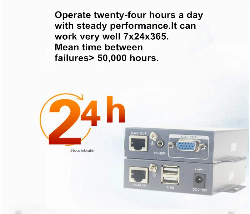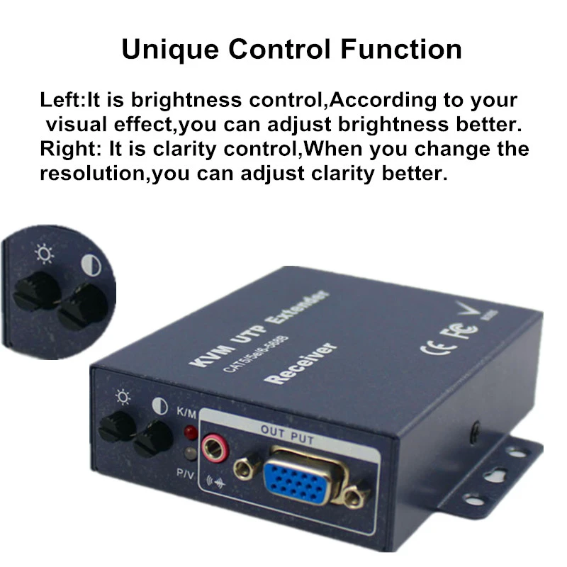 El extensor Navceker VGA KVM proporciona una extensión de la señal de audio de vídeo VGA a largas distancias a través de un solo cable Ethernet RJ45 CAT5/5E/6,. Soporta una alta resolución de hasta 1920*1440 a 60Hz y señal de teclado/ratón y transmisión de señal de salida de bucle VGA. El extensor se puede utilizar para una amplia gama de aplicaciones que requieren transmisión a larga distancia de alta resolución con alta calidad por su buena estabilidad y potente seguridad.