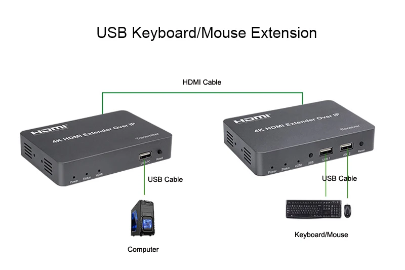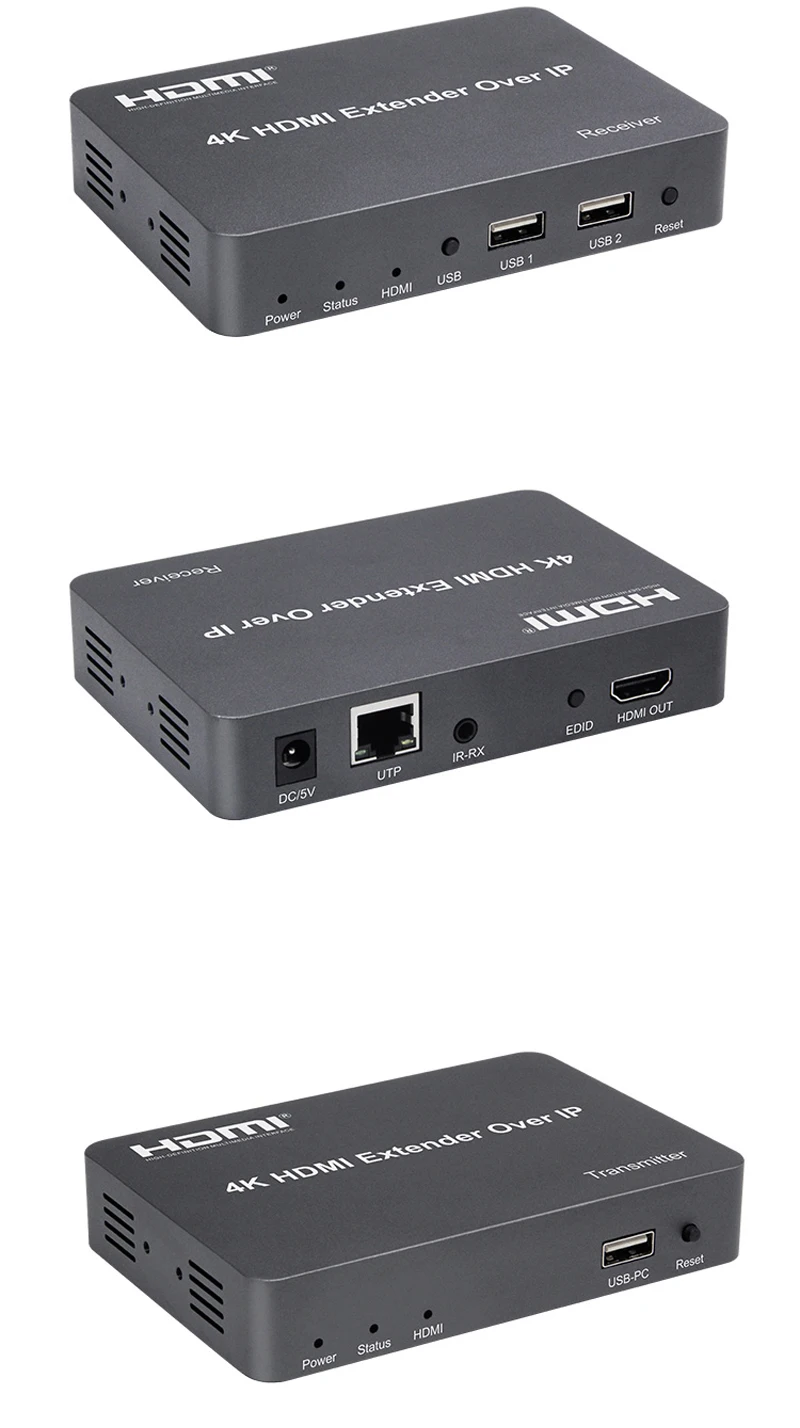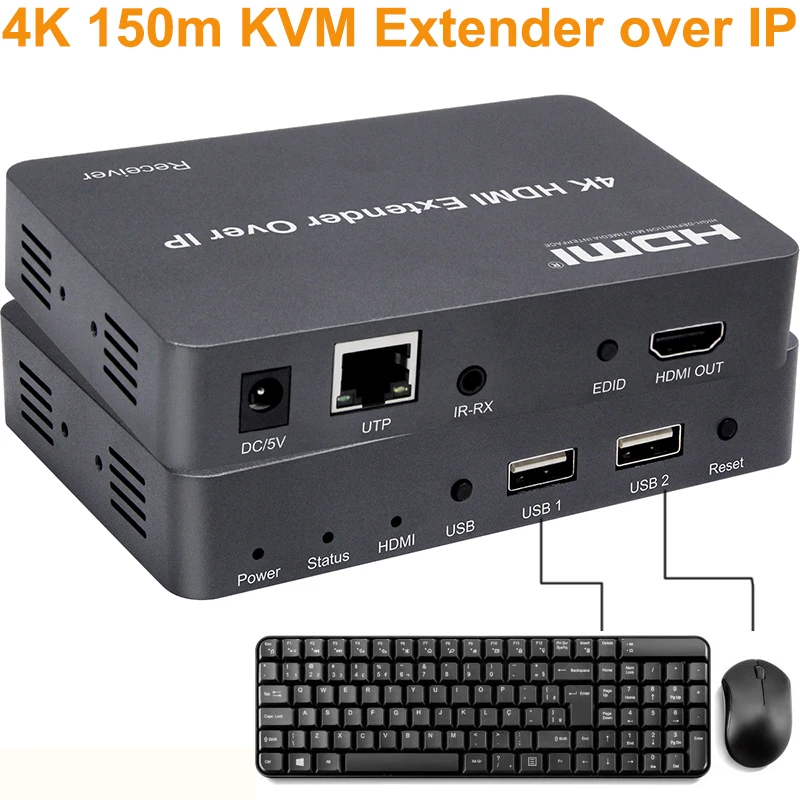 Comprar Extensor de vídeo 4K, 150m, IP, HDMI, USB, KVM, divisor, receptor sobre Cat5e, Cat6, Rj45, Cable Ethernet, compresión sin pérdidas
