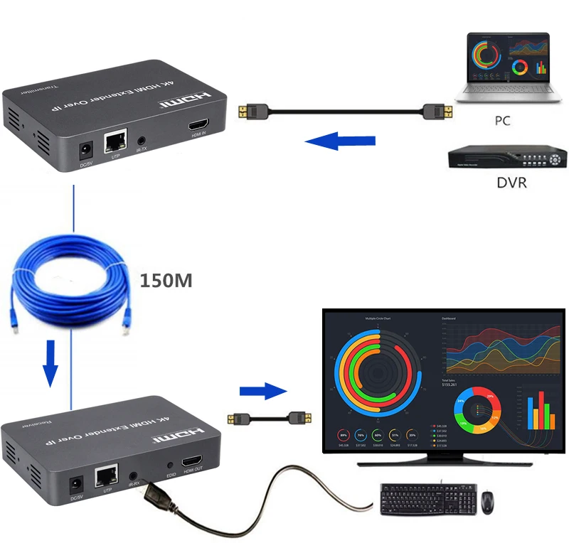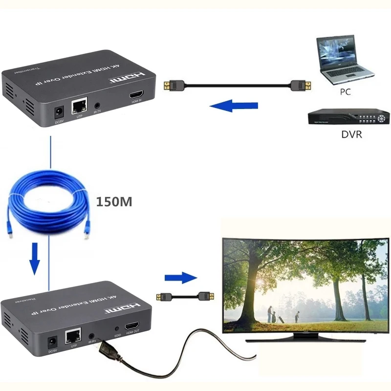 Este extensor IP HDMI 4K de 150m puede transmitir video HDMI 4K de alta definición desde su reproductor HDMI DVD,