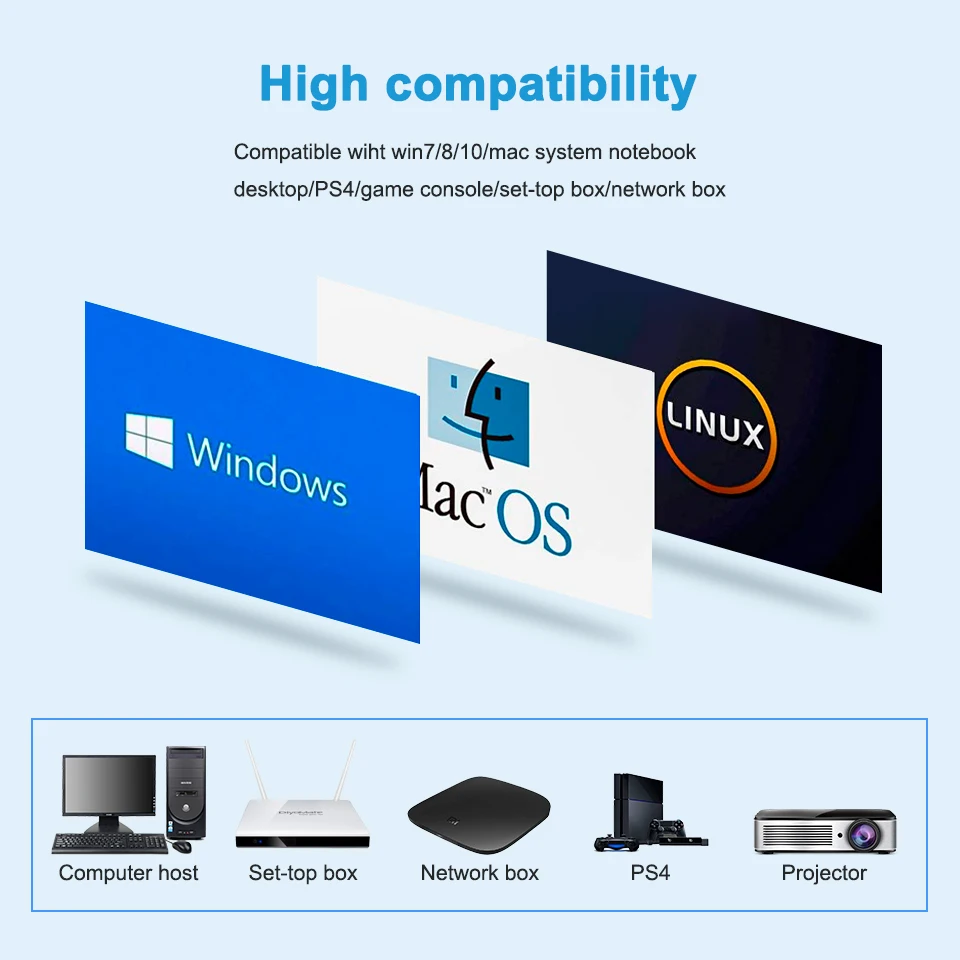 Instrucción:El extensor HDMI Wiistar proporciona extensión de señales HDMI de largas distancias a través de un único cable CAT5e/6, admite alta resolución de hasta 1920x1080@60Hz, señal de teclado y mouse y transmisión de salida de bucle HDMI.El extensor se puede utilizar para una amplia gama de aplicaciones que requieren transmisión de larga distancia de alta resolución con alta calidad gracias a su buena estabilidad y su potente seguridad.Características:*Distancia de transmisión: hasta 100 m en un solo cable CAT5e CAT6;*Resolución de vídeo: hasta 1920*1080P@60Hz;*Frecuencia de muestreo de audio: 32 kHz, 44,1 kHz y 48 kHz;*Formato de audio: pcm;*Función KVM USB: admite control remoto de teclado y mouse;*Salida de bucle HDMI: El transmisor con una salida local HDMI;*Tecnología comprimida H.264, menos de 50 ms de retardo;*Hombre a hombre: una aplicación TX a una RX;*Hombre a mujer: TCP/IP, una aplicación TX a N RX (máx.: 256 unidades RX) con con conmutador/enrutador Ethernet;*IEEE-568B: estándar 802.3 Ethernet 10/100/1000Mbps;*Estándar de vídeo: cumplimiento de los estándares HDMI 1.3 y HDCP 1.2;*Función copiar EDID: combina con muchos tipos de dispositivos de visualización;*Sistema de ajuste automático incorporado: hace que la imagen sea suave, clara y estable;*Sistema de protección ESD incorporado: hace que la transmisión sea mucho más segura.Adaptador de extensión HDMI perfecto para casas grandes, fábricas, sitios de construcción, centros de control de datos, etc.; plug and play*Fácil de instalar, plug and playEspecificaciones:Estándares----------HDMI 1.3; HDCP 1.2Resolución------1920X1080@60HzConector-----HDMI-APOE--------No es compatibleDistancia de transmisión--------100MUSB