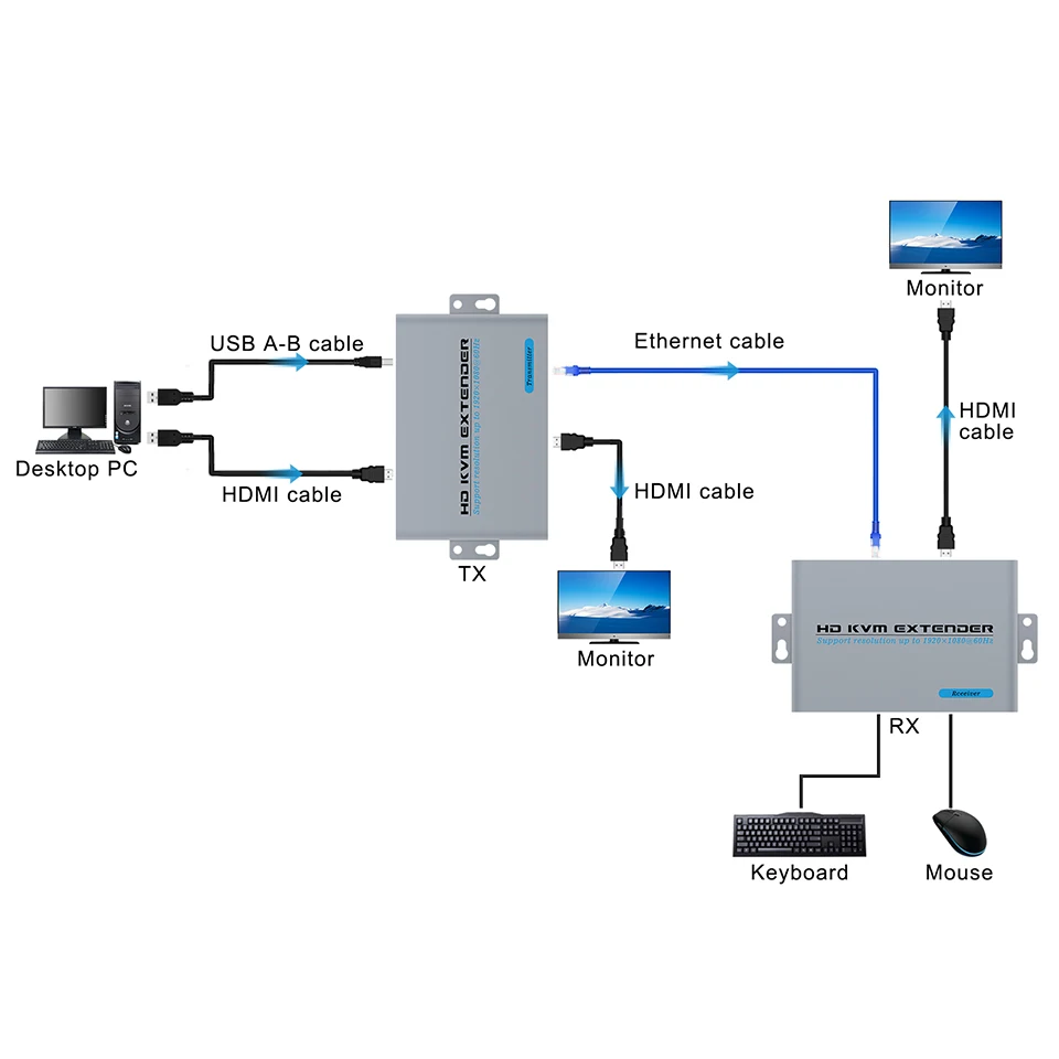 Extensor KVM WIistar HDMI a través de IP RJ45 Ethernet Extensor KVM de red USB HDMI 100M a través del extensor KVM CAT5e CAT6