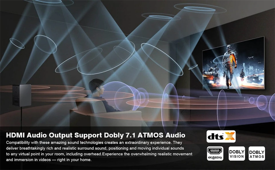 4. Es compatible con cable de salida de audio óptico/3,5mm/HDMI de hasta 1 0 metros (máx.), si elige la salida de audio HDMI, puede disfrutar de 7. CH,5 .1CH,2 CH o copia de audio, si elige la salida de audio óptica, puede disfrutar de 5 .1 o 2 CH o copia de audio. Si elige una salida de audio de 3,5mm, puede disfrutar de 2 canales o una copia de audio.