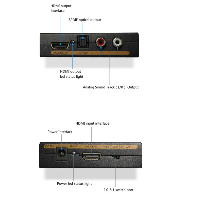 Comprar Extractor de Audio HDMI de 1080P a HDMI/óptico Toslink(SPDIF) /RCA(L/R), salidas analógicas estéreo, convertidor divisor de Audio de vídeo