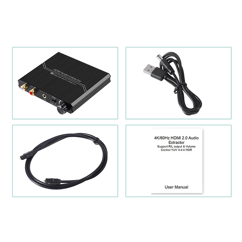 Comprar Extractor de audio HDMI 4K 60Hz 5.1CH HDMI a SPDIF óptico + Estéreo de 3,5 mm + Extractor de audio RCA L/R con control de volumen HDCP 2.2