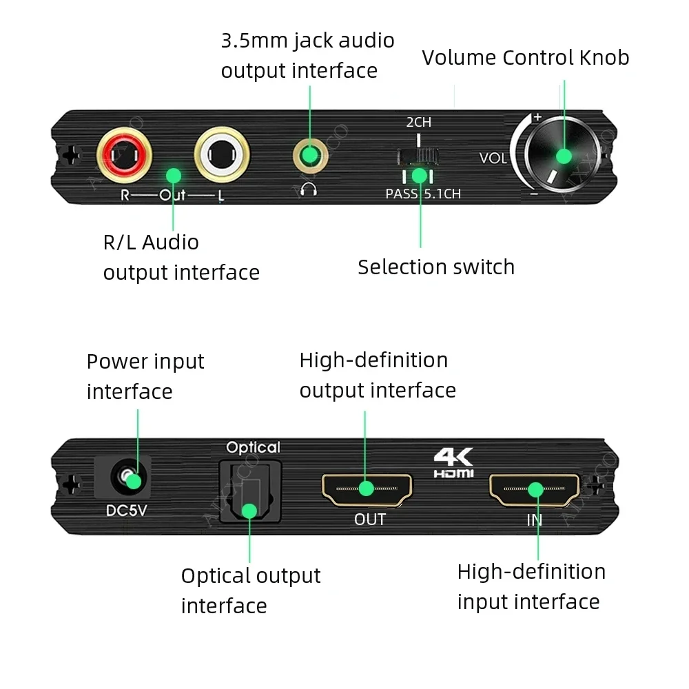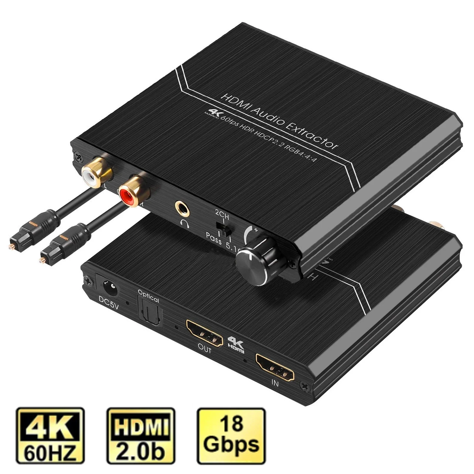 Comprar Extractor de audio HDMI 4K 60Hz 5.1CH HDMI a SPDIF óptico + Estéreo de 3,5 mm + Extractor de audio RCA L/R con control de volumen HDCP 2.2
