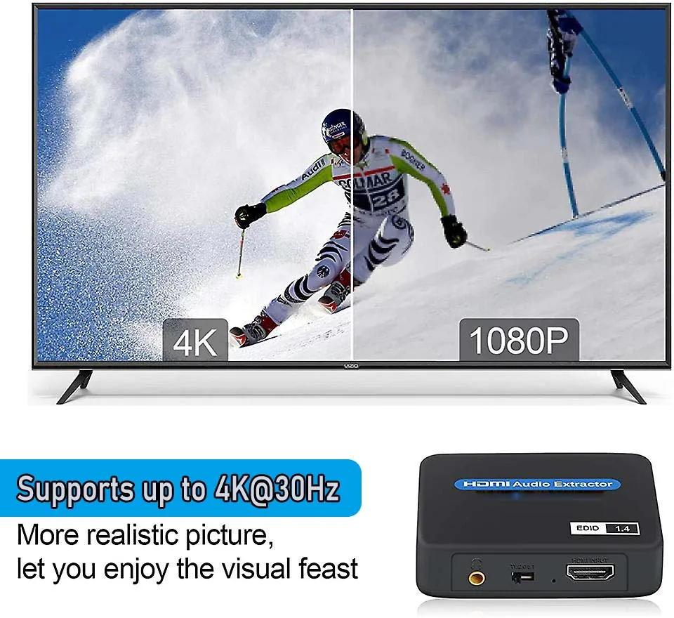 Admite resoluciones de vídeo de hasta [email protected] totalmente compatible con los estándares HDMI 1.4b y HDCP 1.4. Y el divisor de audio HDMI es compatible con varios tipos de dispositivos como PS4, PS5, DVD.