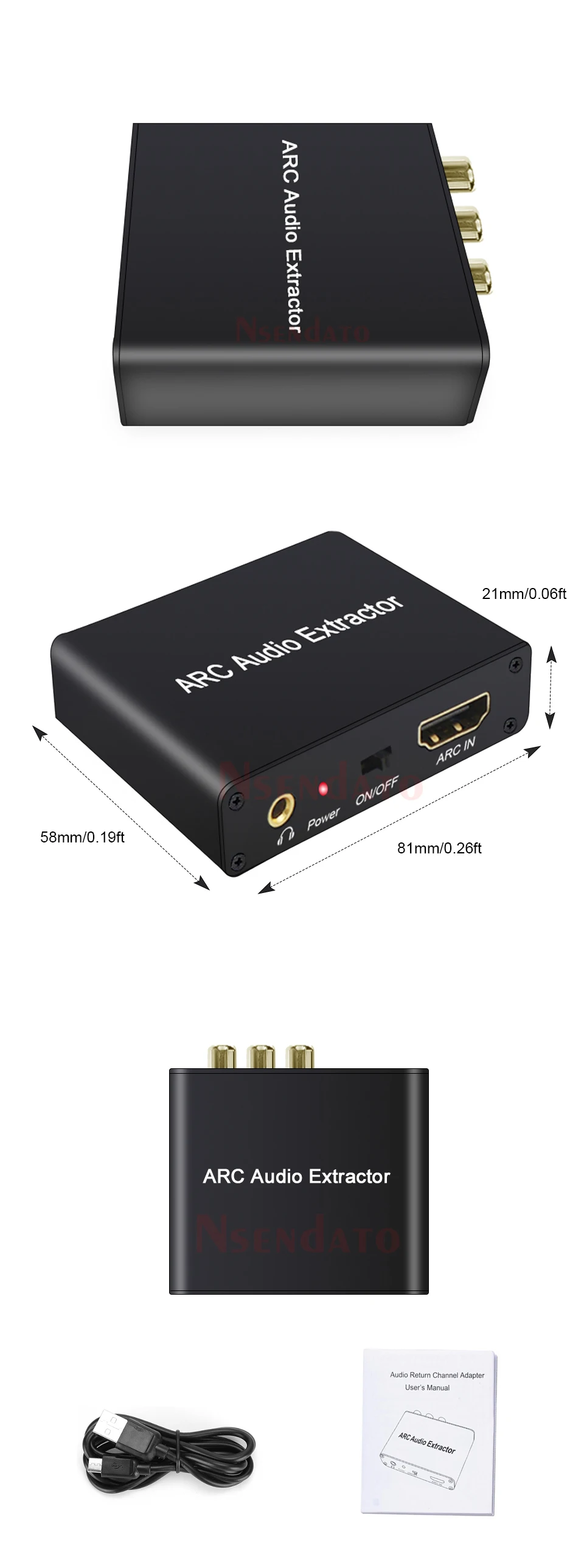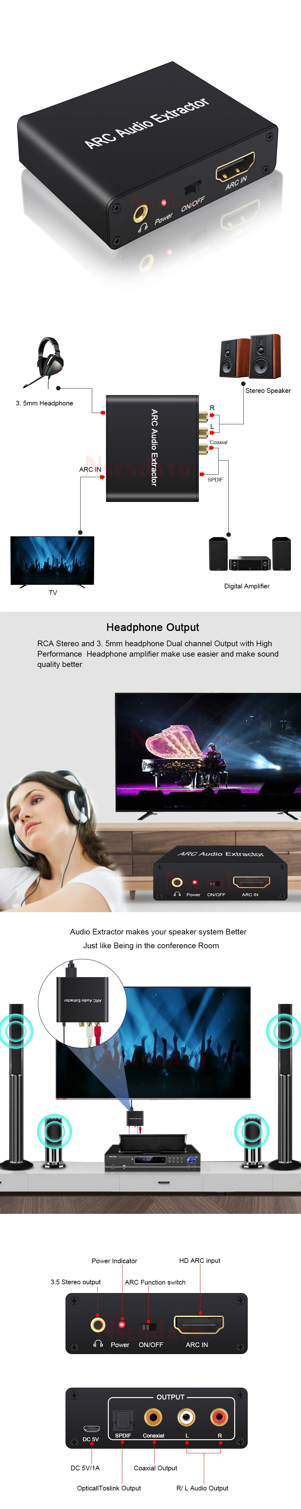 Extractor de Audio HDMI ARC DAC ARC L/R, Extractor de conector SPDIF Coaxial, convertidor de canal de retorno para fibra RCA, auriculares de 3,5mm para TV