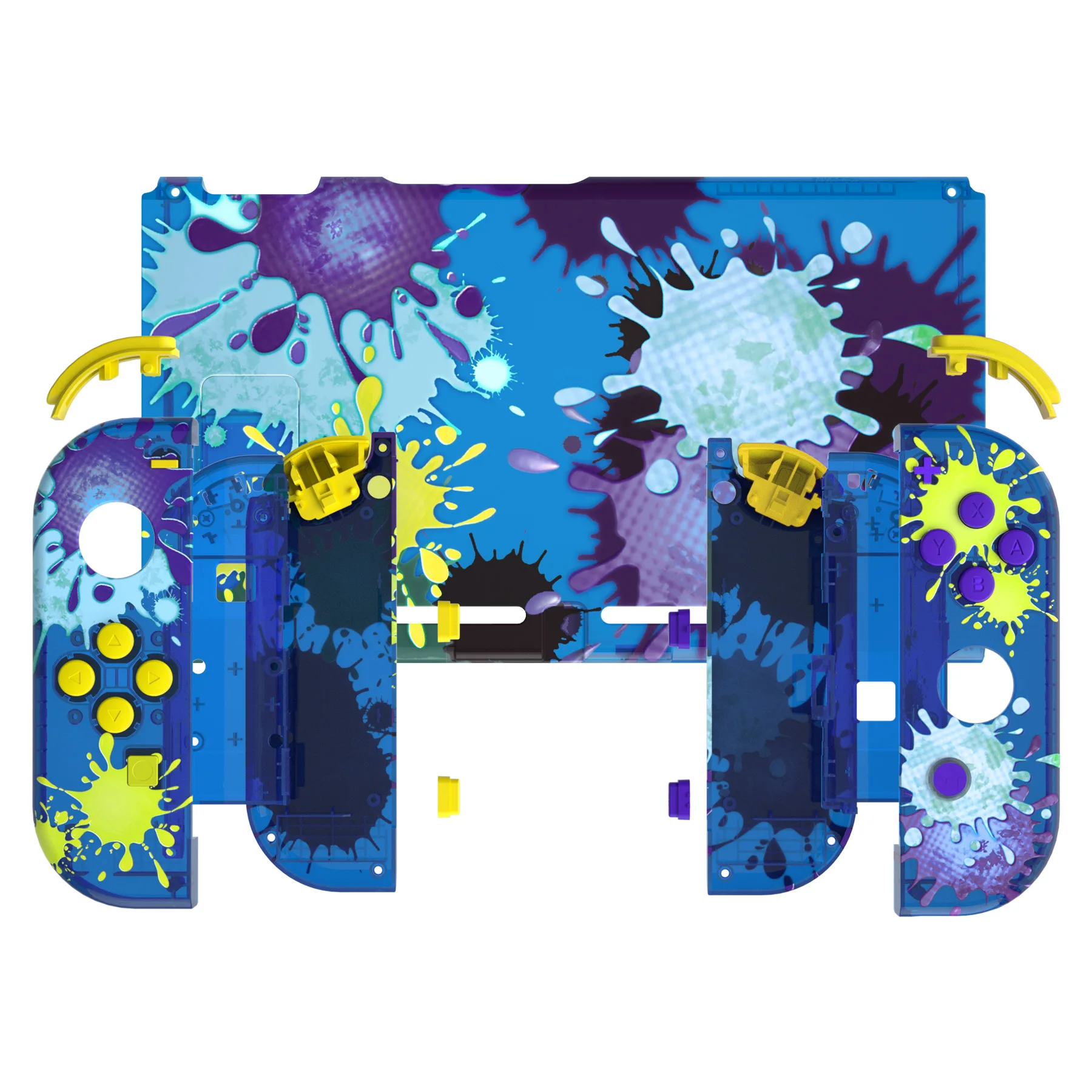Comprar EXtremeRate-carcasa de controlador de placa trasera para Nintendo Switch, juego completo de botones, salpicaduras de pintura, suave, táctil