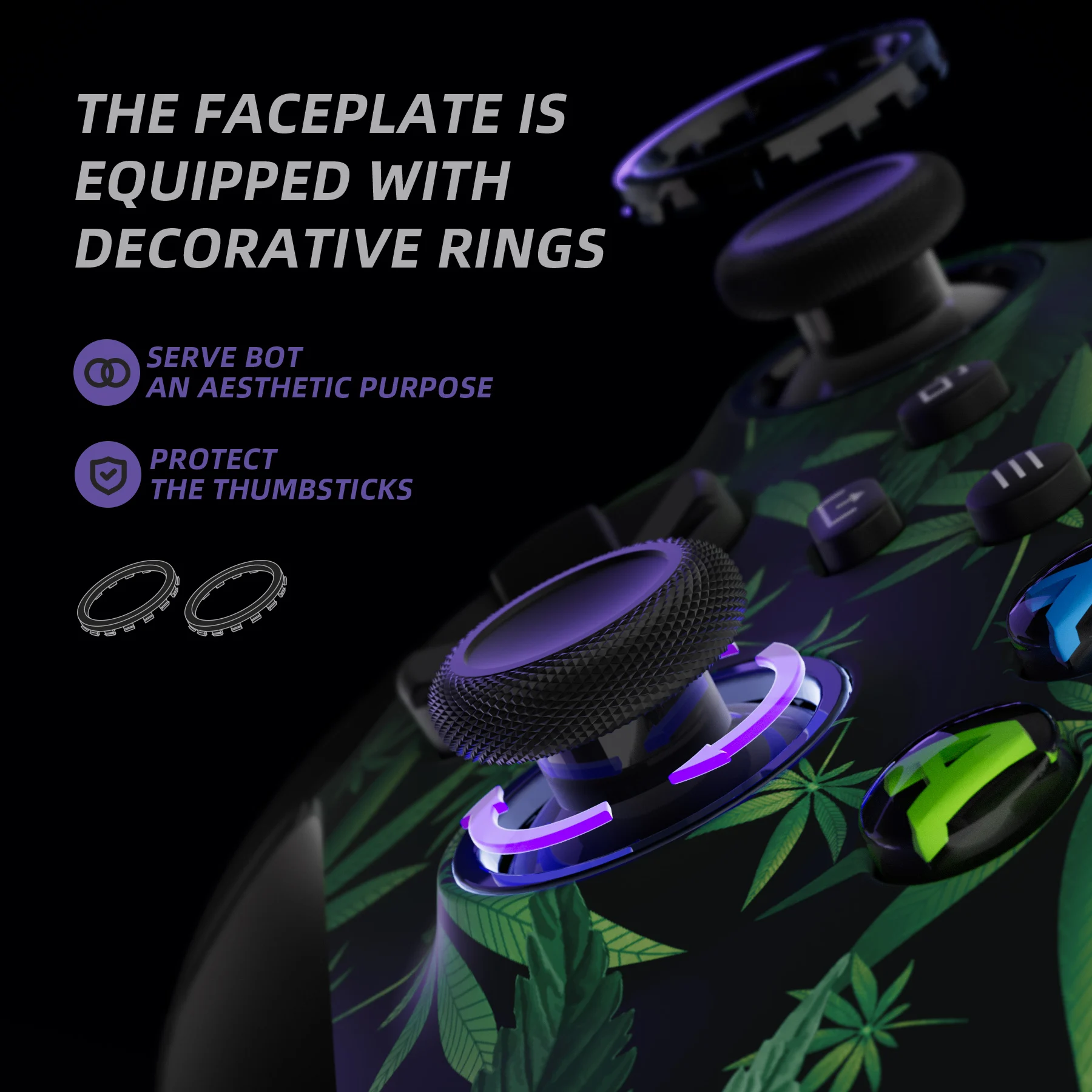 Con anillos de acento para hacer su controlador más personalizado y proteger sus pulgares.