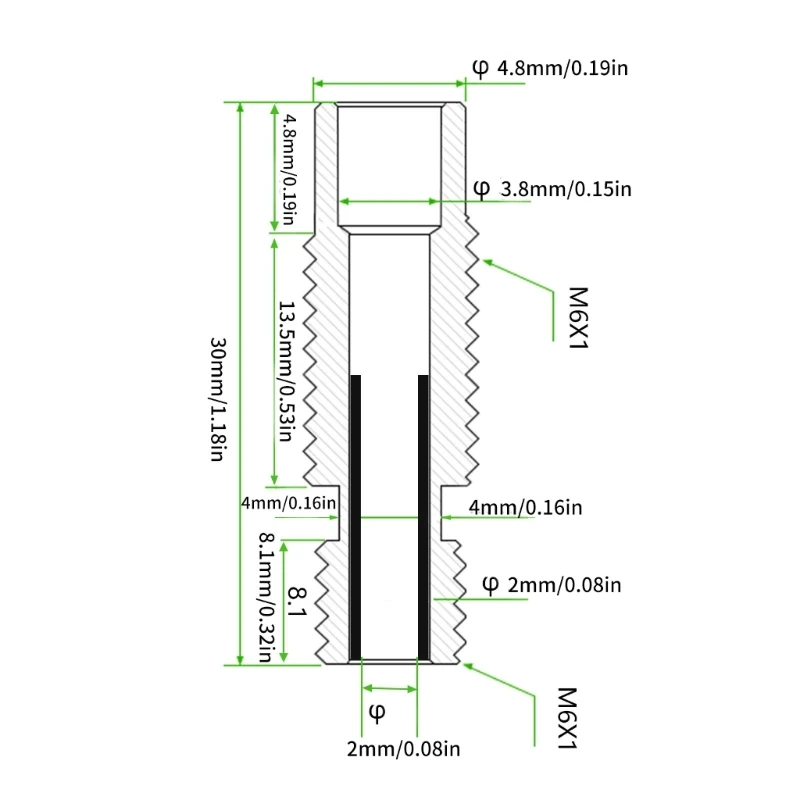 Características:Mejore su impresora 3D con la rotura de calor de acero inoxidable para una conducción de calor más rápida y una impresión a alta temperatura.