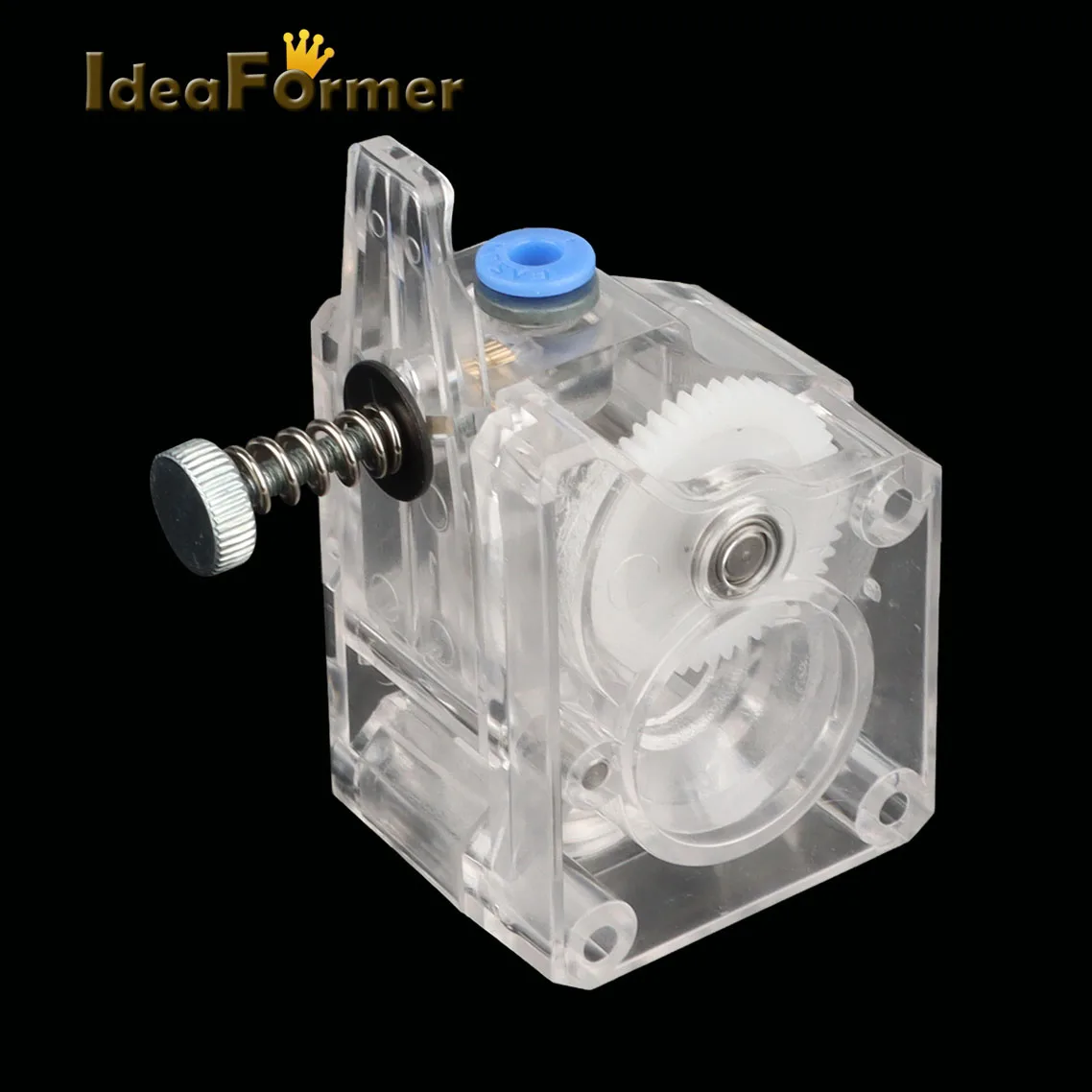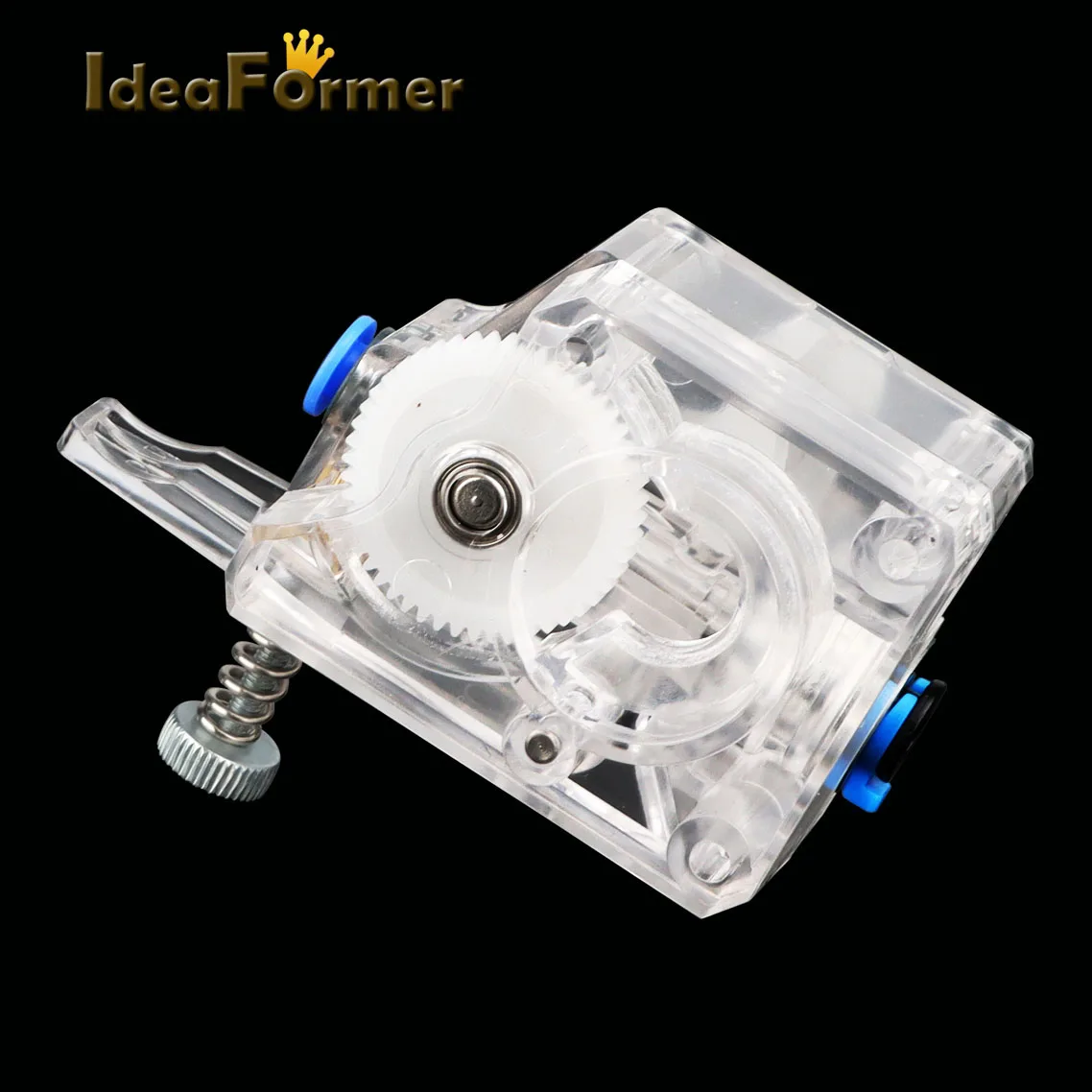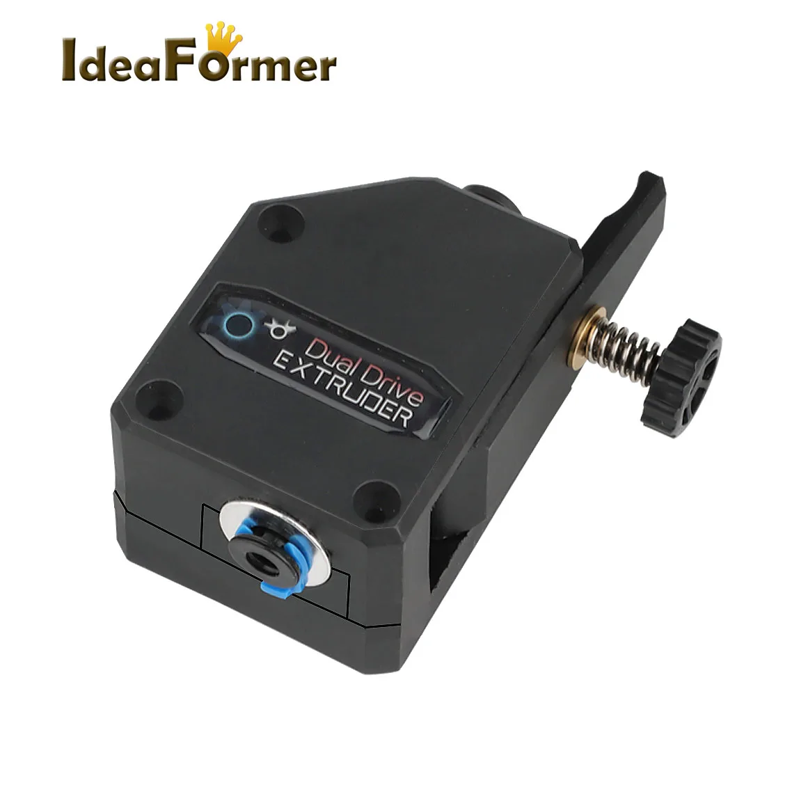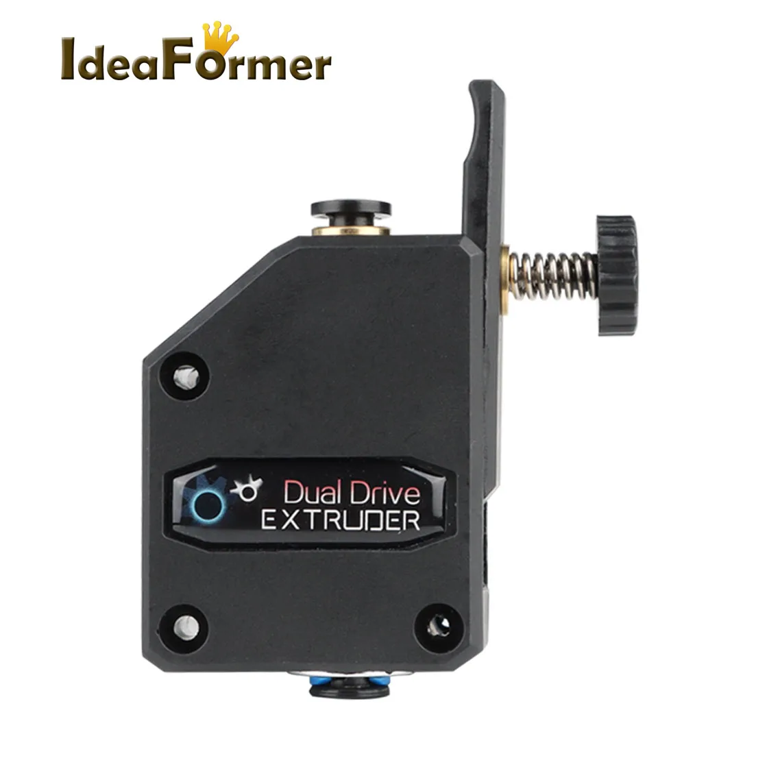 La extrusora está diseñada para consumibles de 1,75 mm. La disposición del resorte de sujeción permite al usuario ajustar la presión aplicada por el engranaje de transmisión dual de alimentación al consumible.Esto permite al usuario ajustar libremente la estanqueidad según las características de los consumibles.