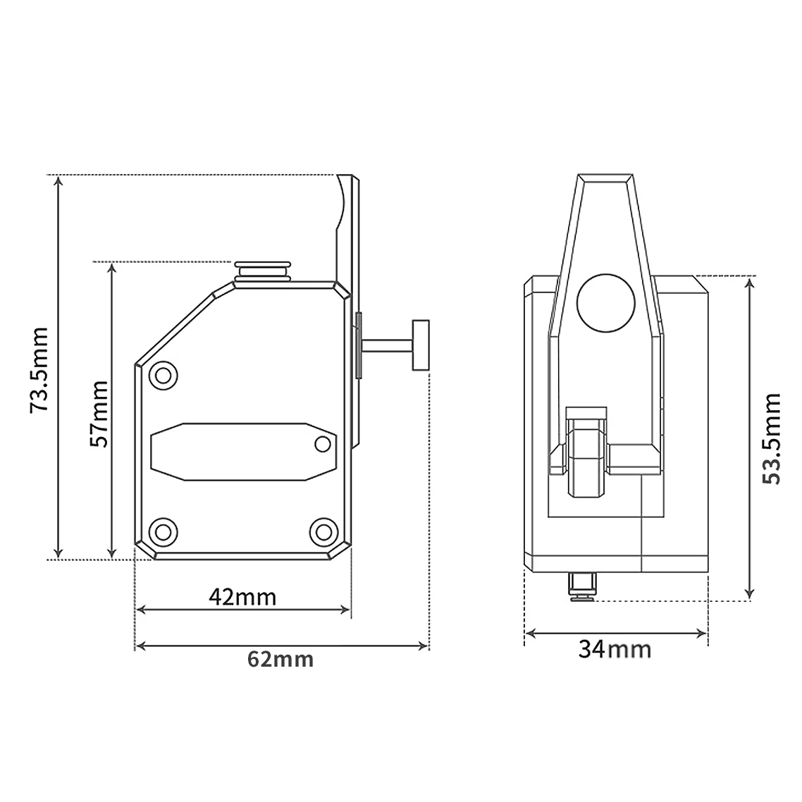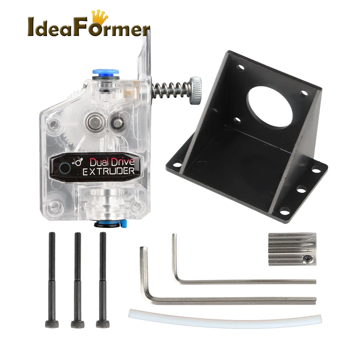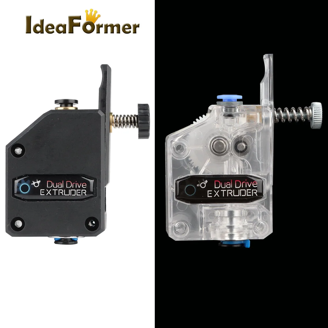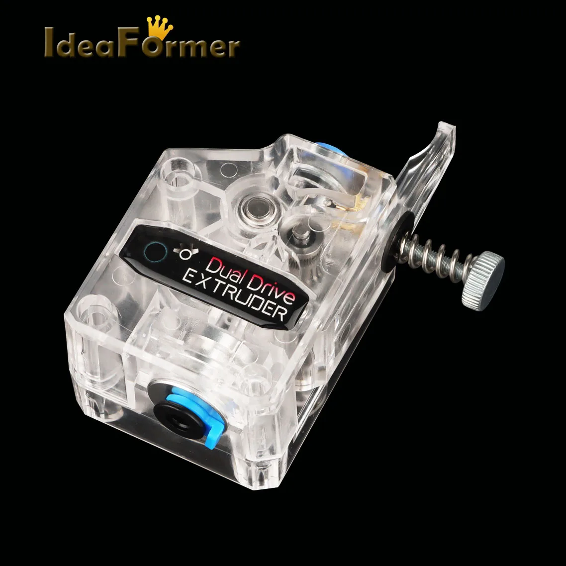 La extrusora está diseñada para consumibles de 1,75 mm. La disposición del resorte de sujeción permite al usuario ajustar la presión aplicada por el engranaje de transmisión dual de alimentación al consumible.Esto permite al usuario ajustar libremente la estanqueidad según las características de los consumibles.