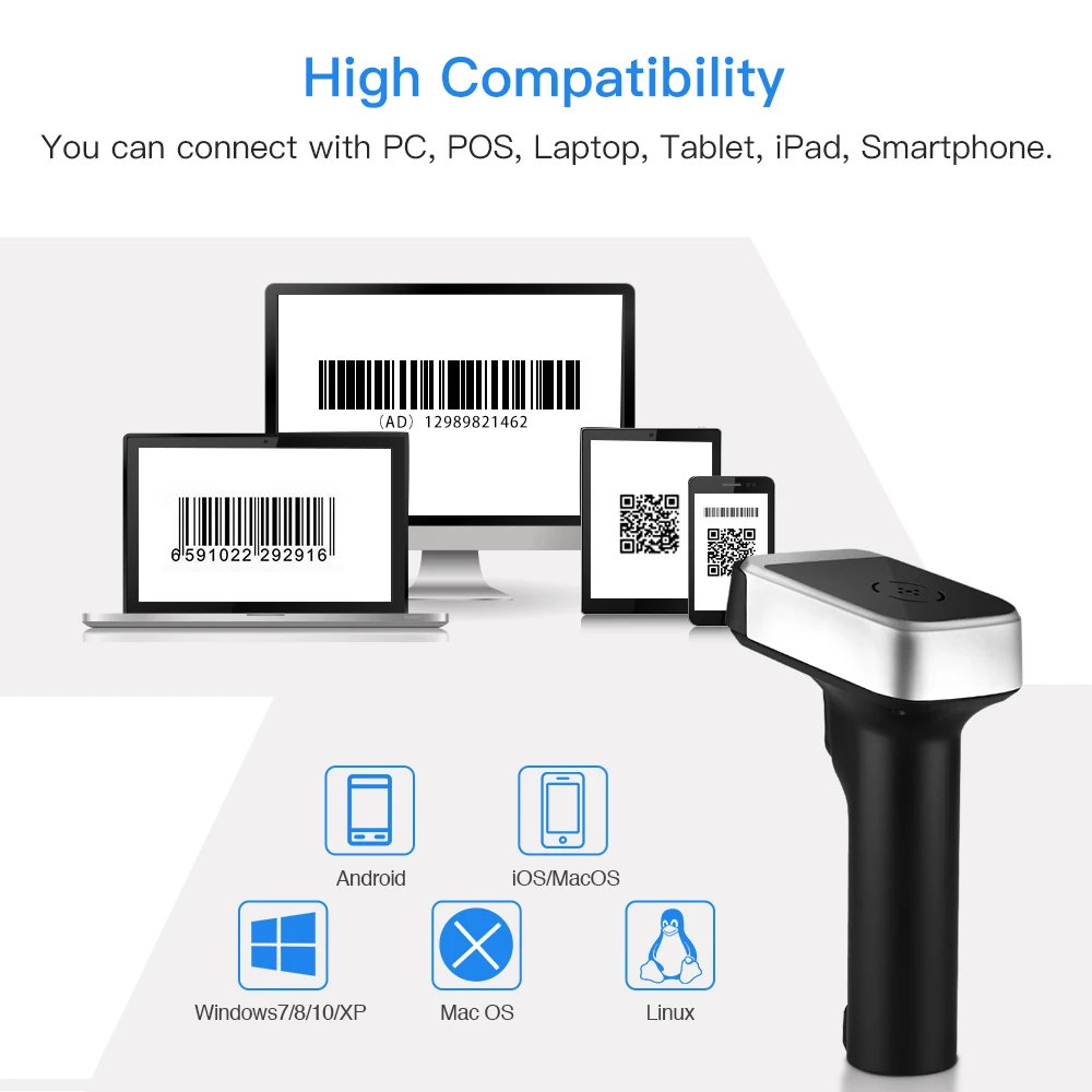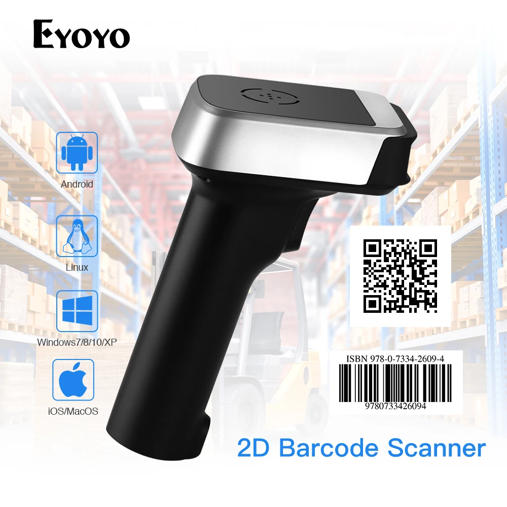 Eyoyo Eyoyo-1900 escáner de código de barras escáner inalámbrico lector de código de barras bluetooth PDF417 QR 2d matriz de datos UPC lector codigo de barra