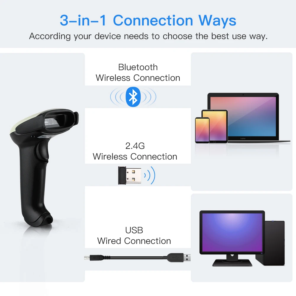 With a high-performance and leading CMOS image recognition technology, it can easily read 1D, QR, 2D barcode from the paper, goods, screen, and other media.