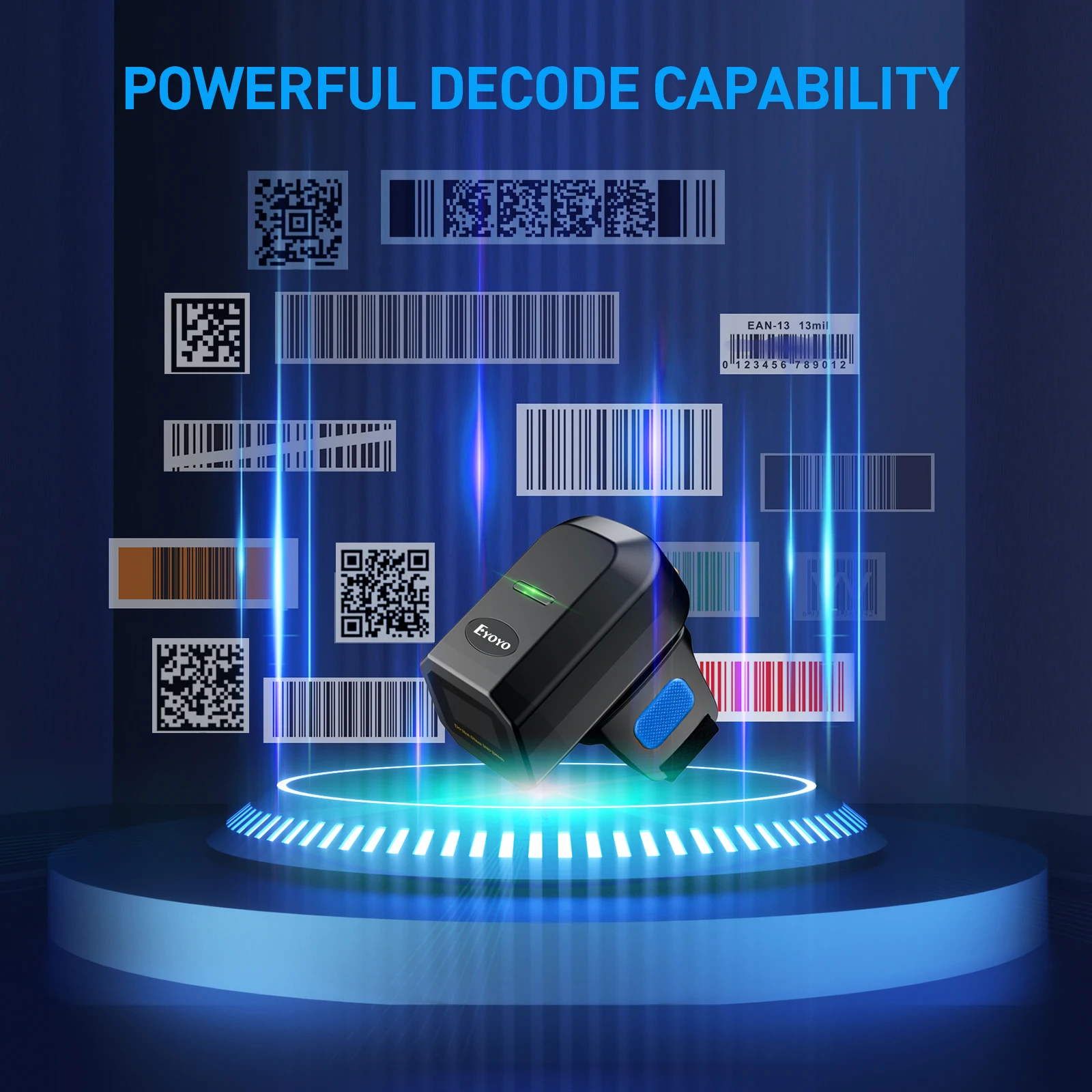 Comprar Eyoyo-escáner de código de barras de anillo inalámbrico 2D, Compatible con Bluetooth 2,4G, con cable, portátil, usable, Mini lector de código de barras de dedo