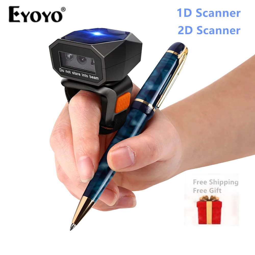 Comprar Eyoyo-escáner de código de barras de anillo portátil, miniescáner de dedo portátil 3 en 1, con cable USB, 2,4G, inalámbrico, Bluetooth, iPad, iPhone, EY-016 2D