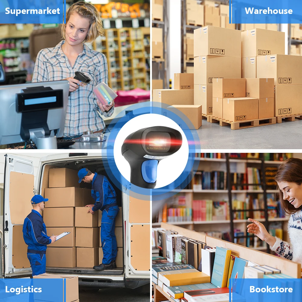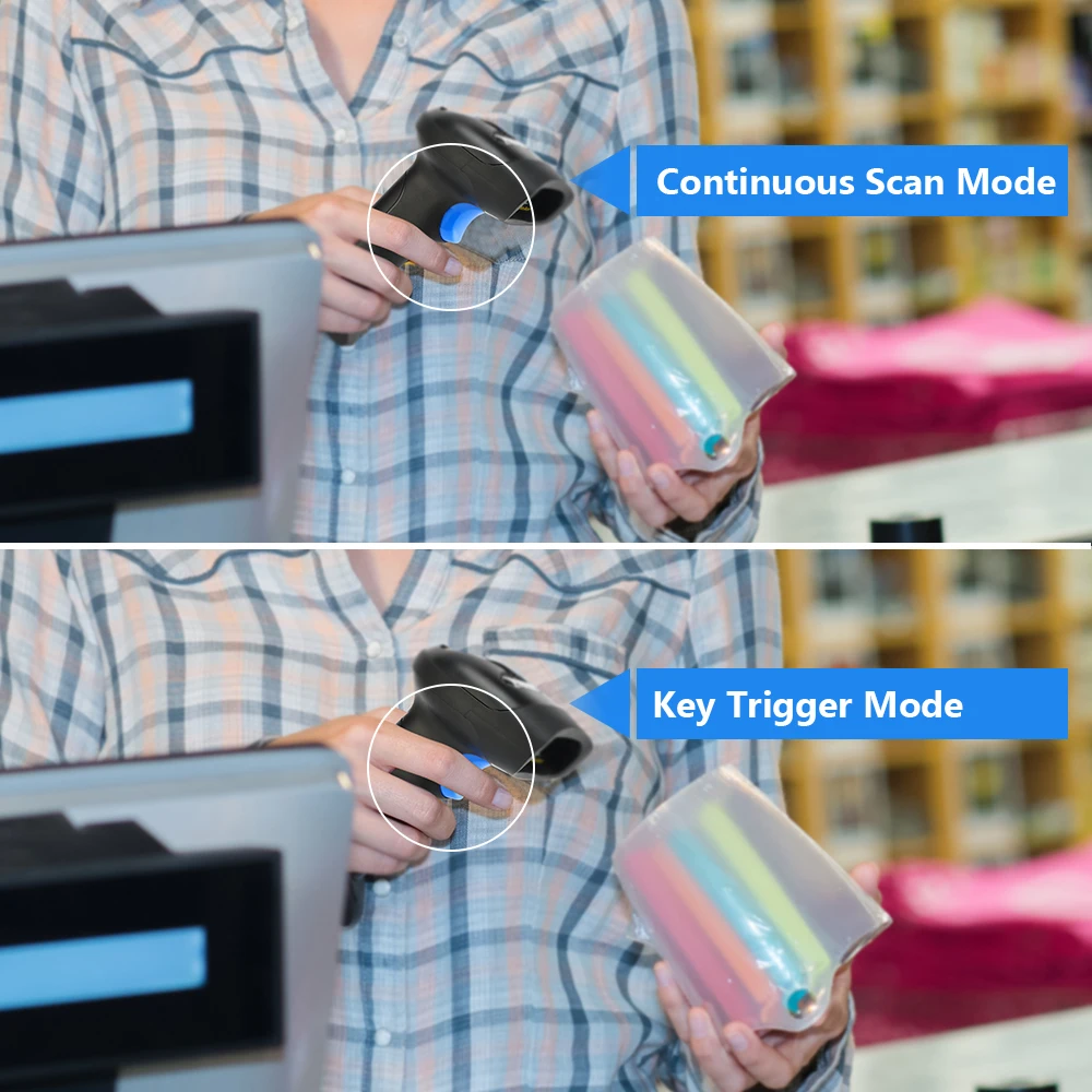 Con escaneo continuo y disparador de teclas, dos modos de escaneo, cuando tenga muchos productos y productos que necesita escanear, puede elegir el modo de escaneo continuo para trabajar para usted, escaneo rápido para mejorar la eficiencia de su trabajo y ahorrar tiempo.