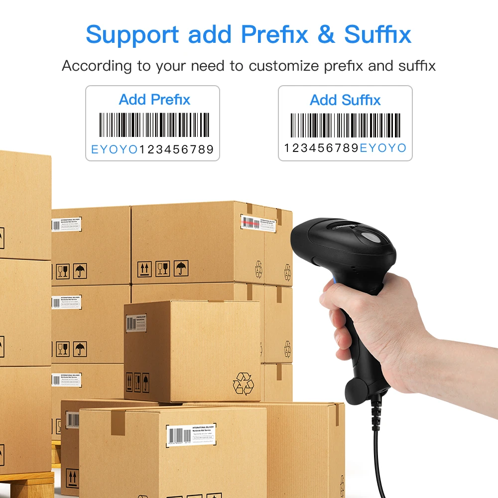 Eyoyo nuevo escáner de código de barras con cable de mano 1D 2D QR sale, USB plug and play, no es necesario instalar o descargar ningún software, controladores o aplicaciones.