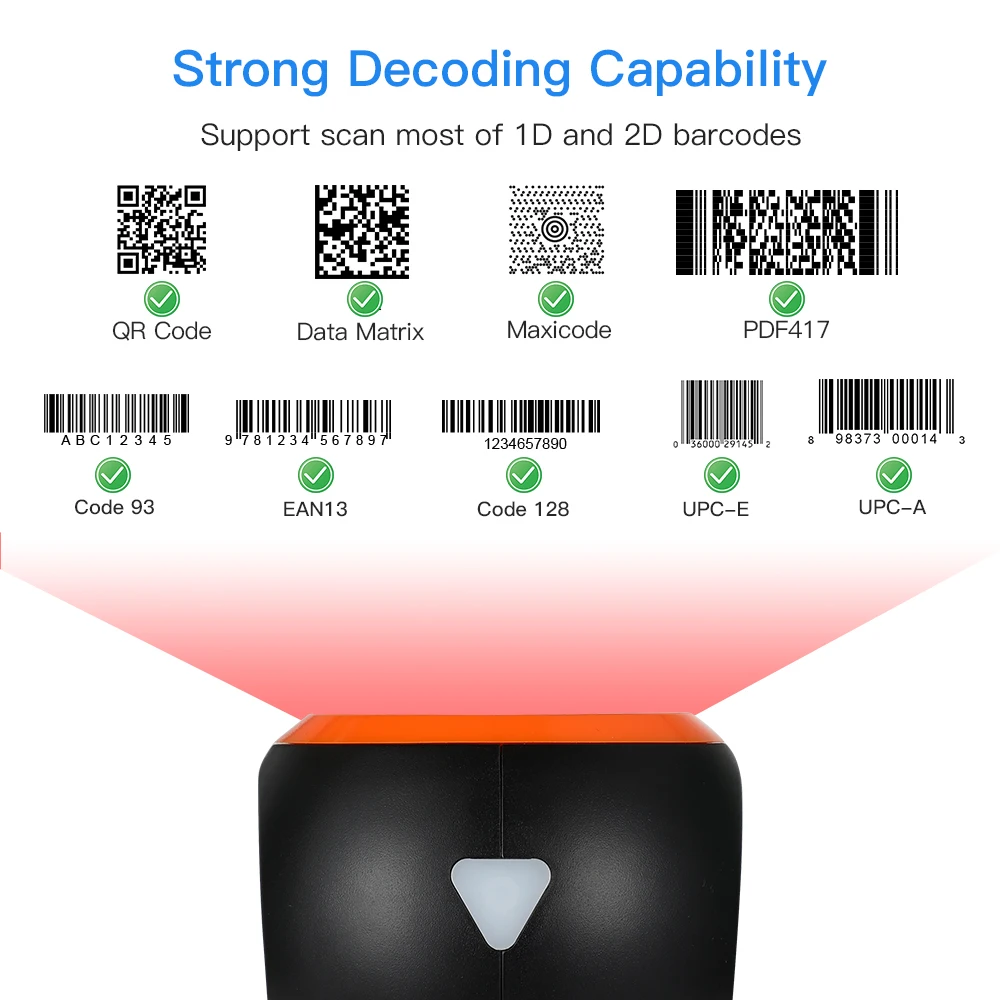 7. Super capacidad de reconocimiento de código de pantalla, puede identificar fácilmente el código de barras 1D y 2D en la computadora o teléfono móvil.