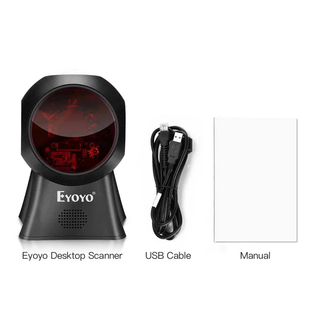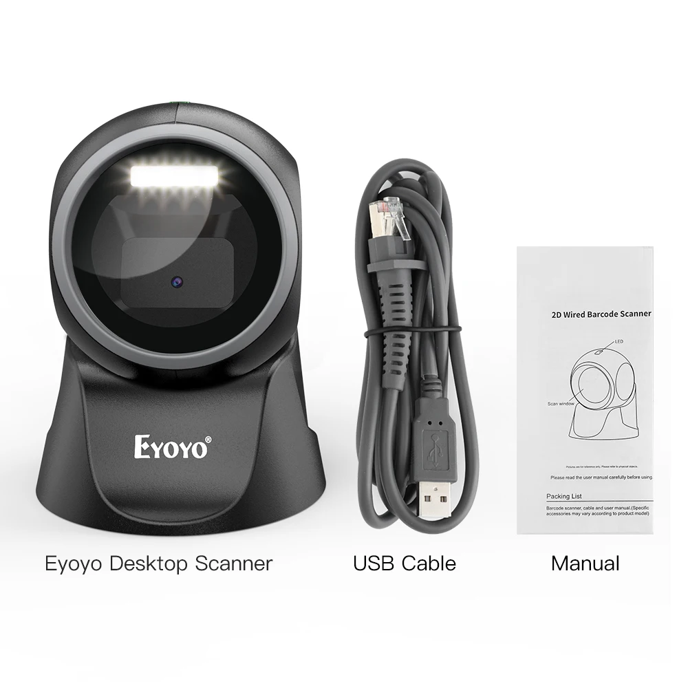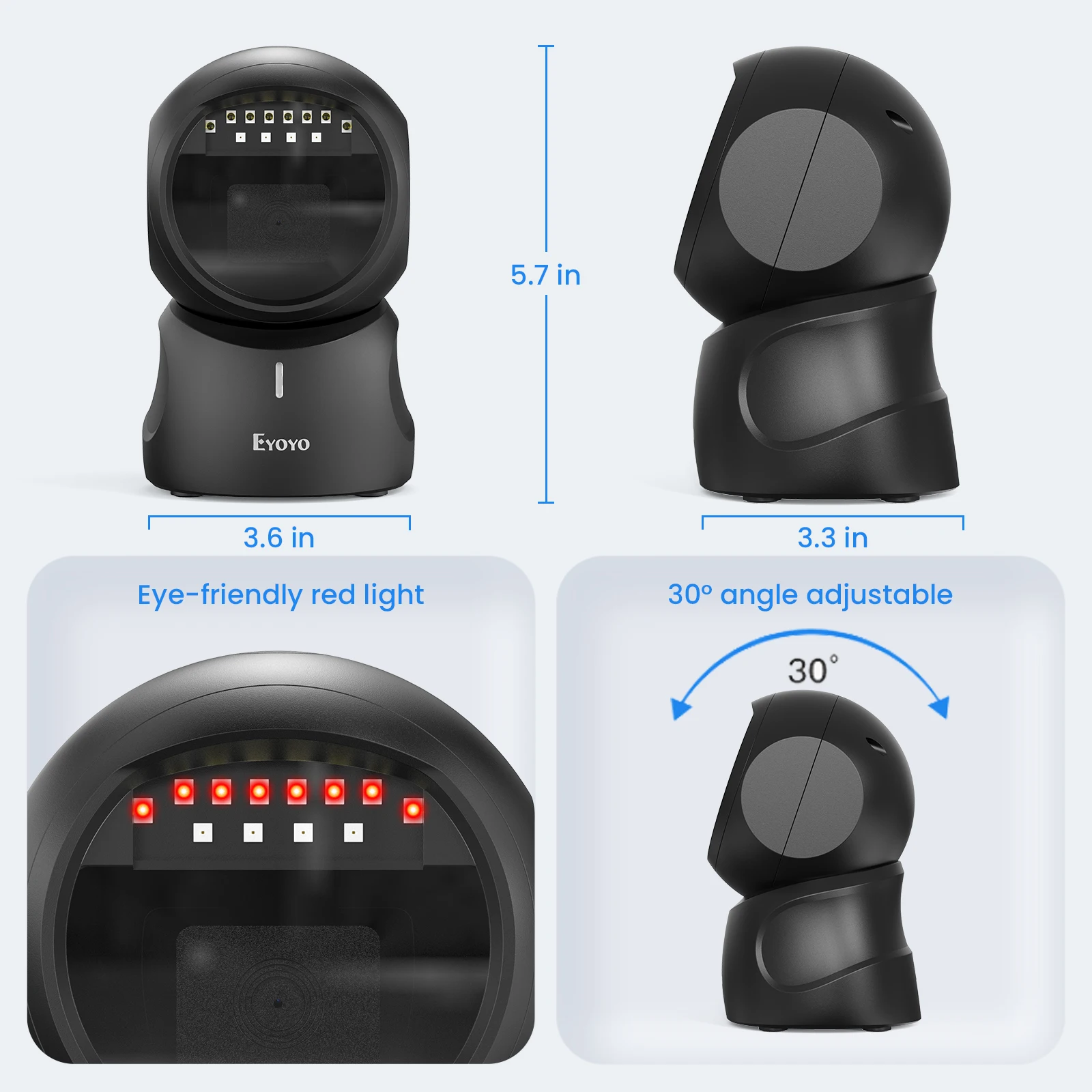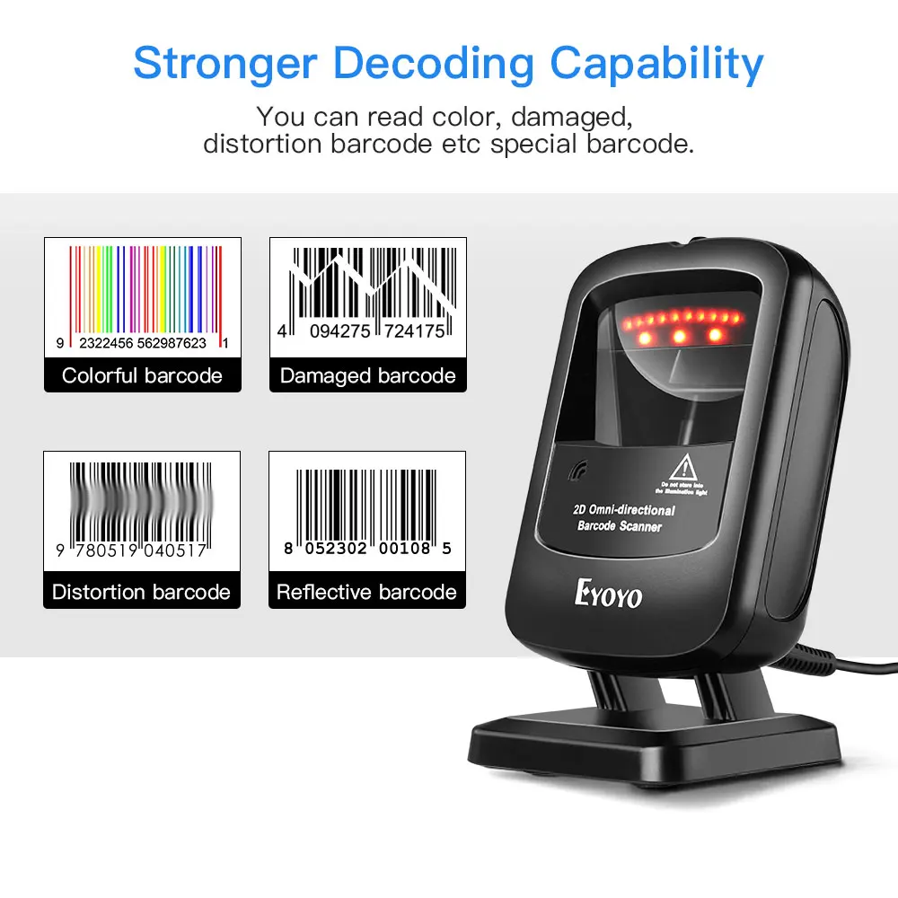 Comprar Eyoyo-escáner de código de barras para escritorio, lector de pantalla de código QR manos libres con detección automática, cable USB omnidireccional, 1D, 2D