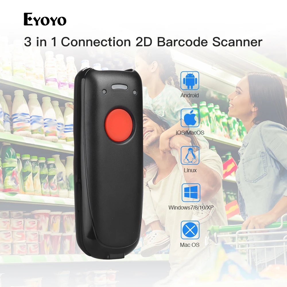 Comprar Eyoyo-Mini escáner de código de barras EY-004A, lector de código de barras inalámbrico 3 en 1, 1D, CCD, Compatible con Bluetooth y conexión inalámbrica 2,4G