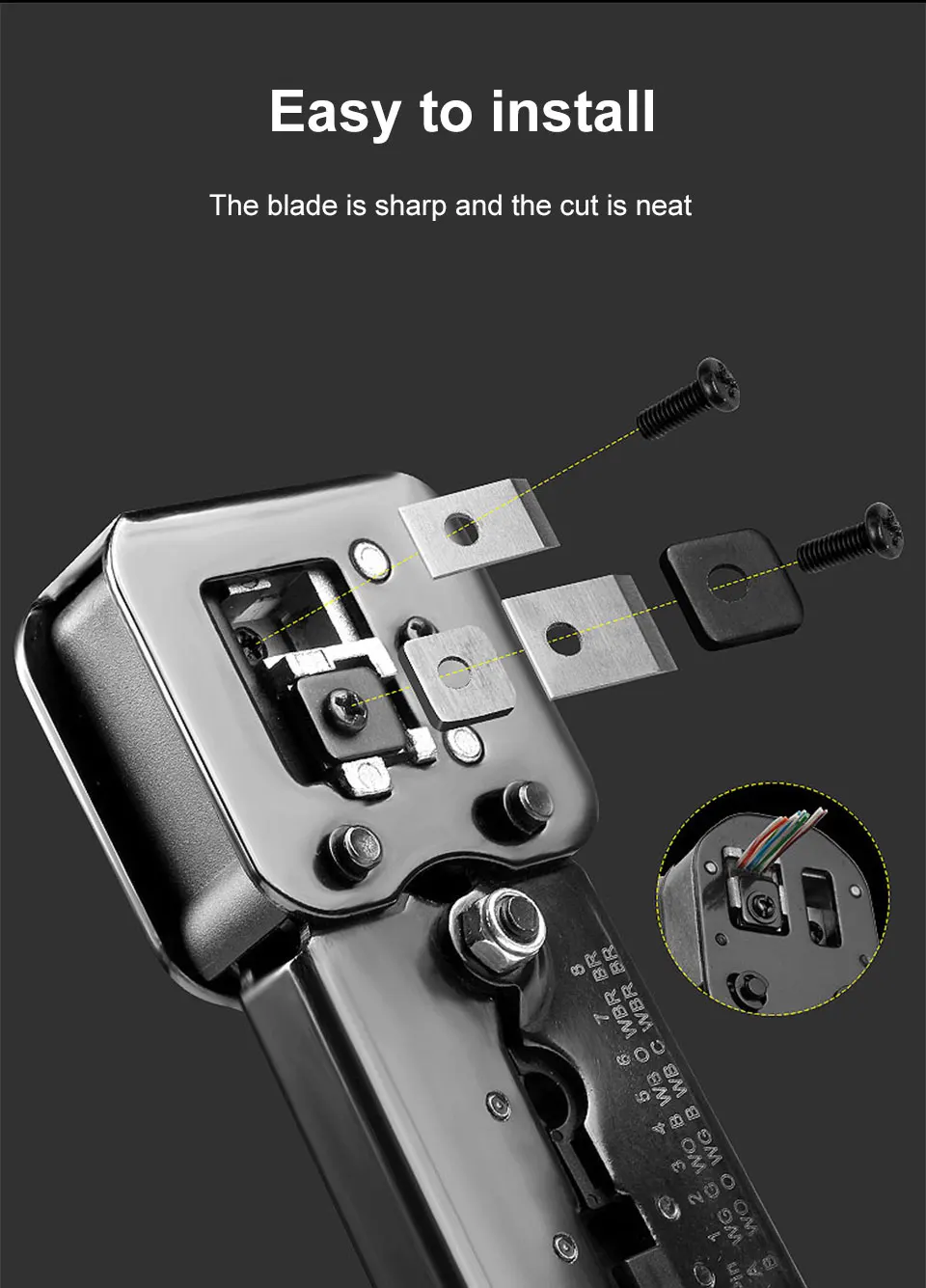 Comprar Ez rj45 herramientas de cimpado, Cable de prensado de cuchillas, pelacables RJ45, abrazadera de línea de prensado de cuchillos, alicates RJ12, pinzas de hoja, piezas de herramientas