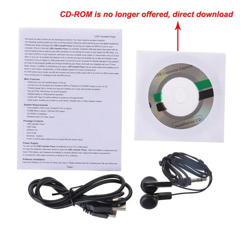 Comprar Ezcap 218-2 Cassette USB 2,0 Original, reproductor Walkman de tarjeta de captura de Audio, cinta vieja a PC, convertidor de Cassette-to-MP3 Super USB