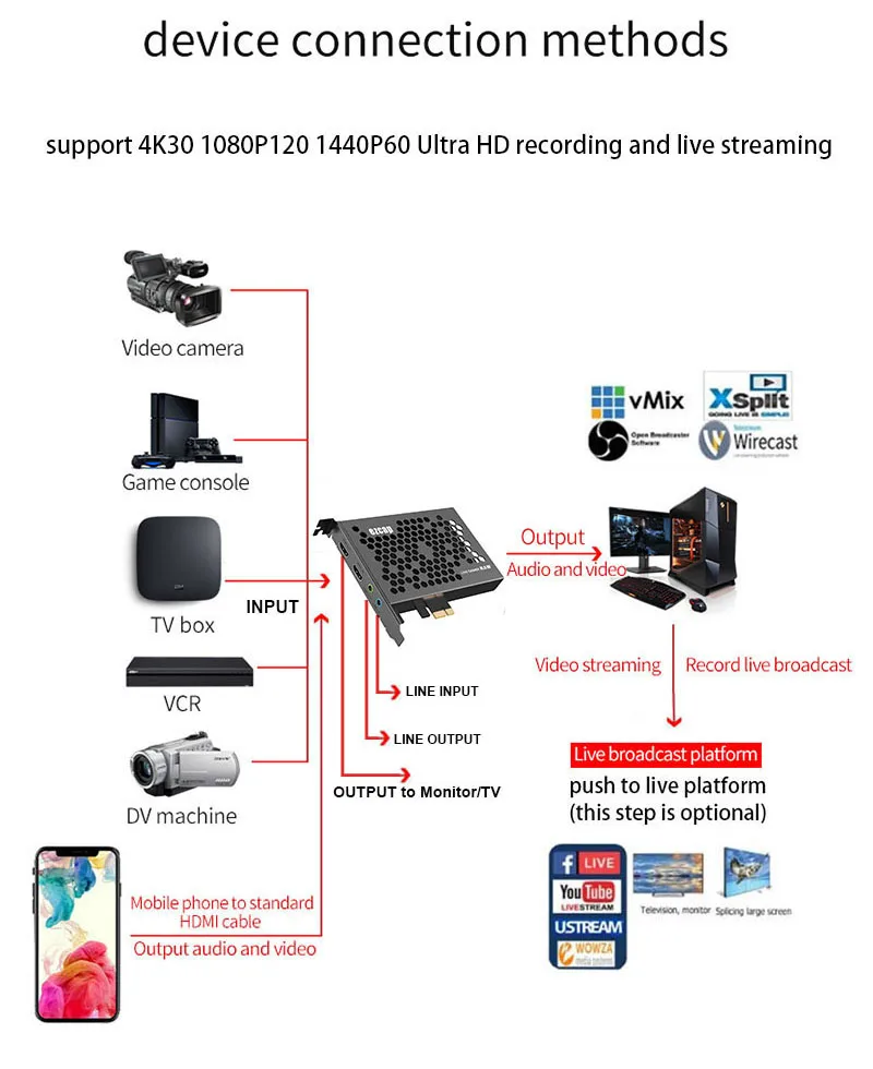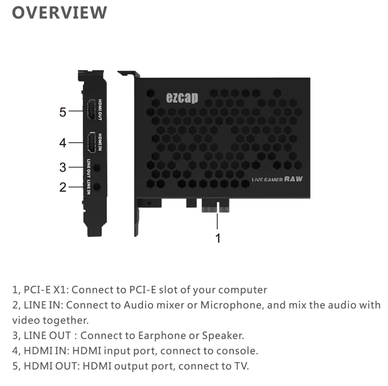 Comprar Ezcap-tarjeta De captura De vídeo PCIE 1080p 4K HDMI, Placa De juego De grabación De vídeo, dispositivo De transmisión en vivo, mezclador De sonido, salida De Audio De línea