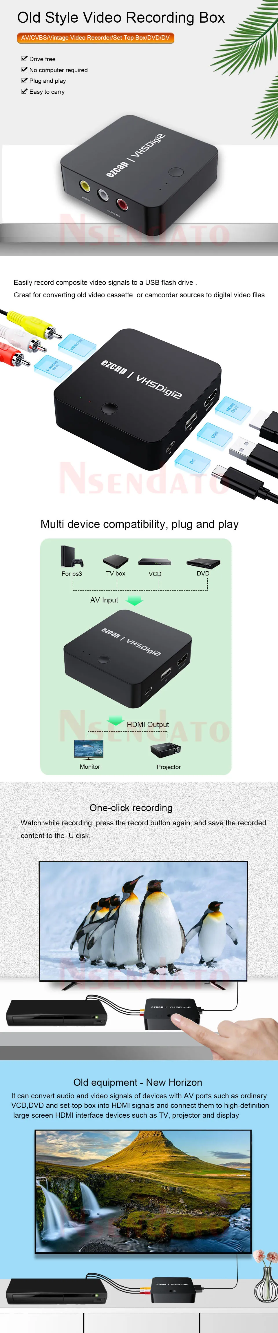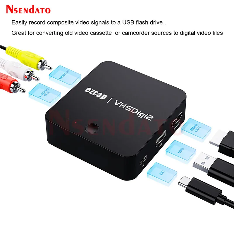 EZCAP181 Grabadora de audio de vídeo analógico VHS a Digital Grabadoras de captura de vídeo AV HD para videocámara U Hi8 VCR DVR digitalizador de cinta