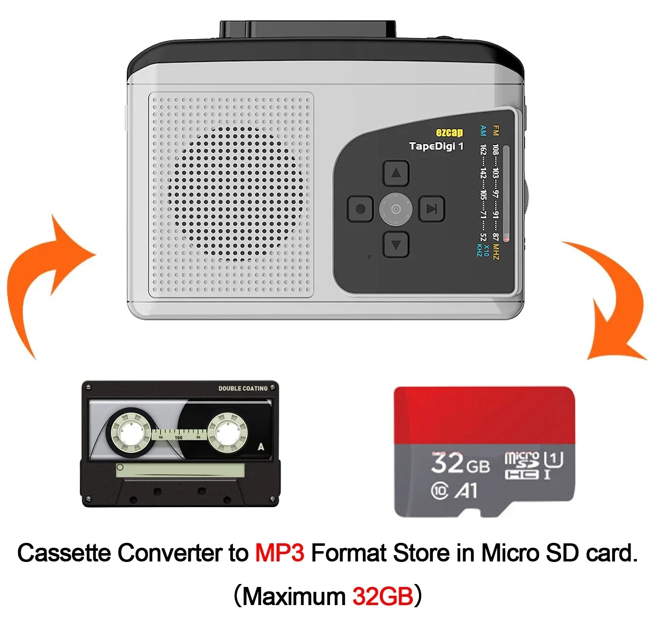 -Convierte tu preciosa colección de casetes a MP3, guarda en tarjeta TF, no requiere ordenador.