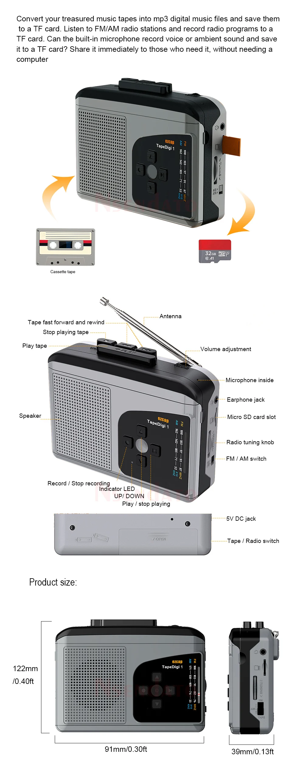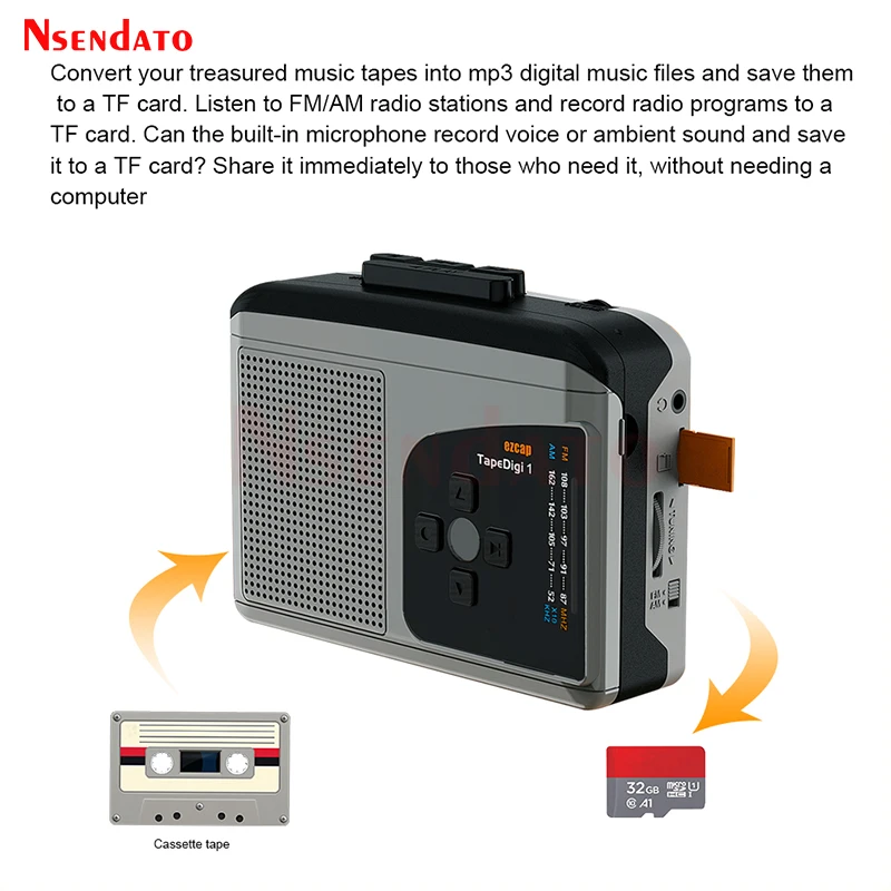 Comprar Ezcap234-REPRODUCTOR de casete de cinta Original a MP3, convertidor con altavoz, grabadora de casete de Radio AM/FM a tarjeta TF, tarjeta de captura de Audio