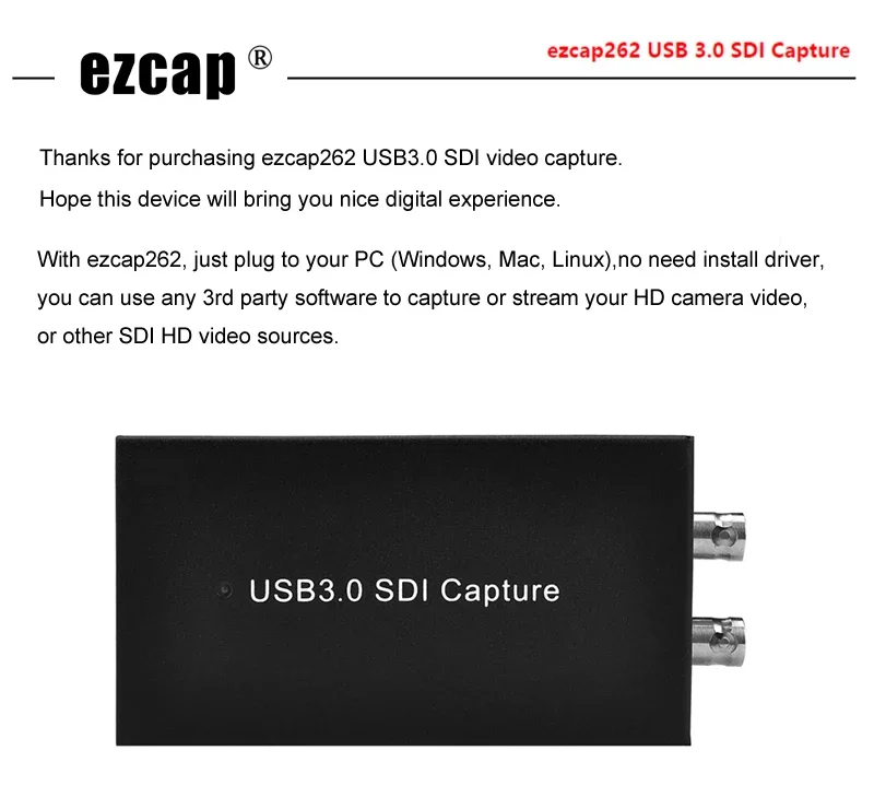 --Con velocidad de transferencia de datos rápida USB 3.0, puede capturar fuentes de vídeo SDI HD desde dispositivos con salida SDI