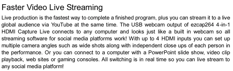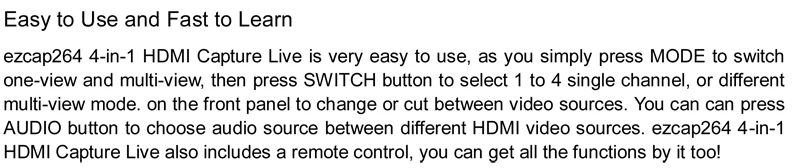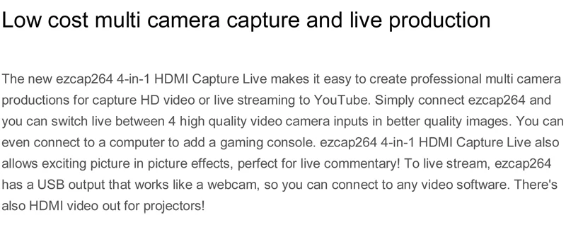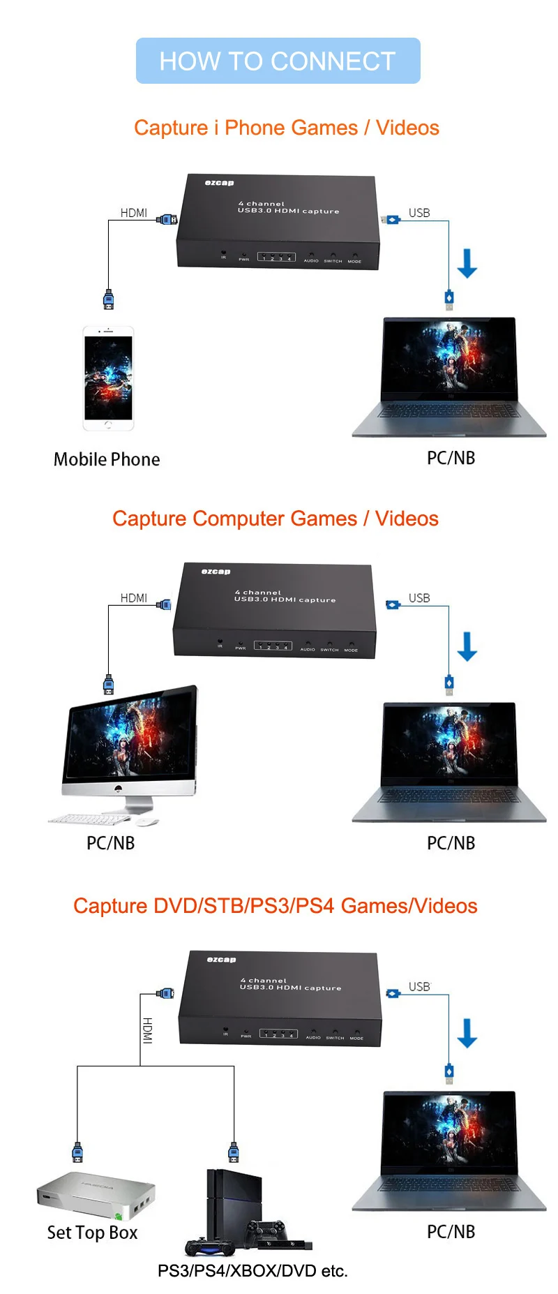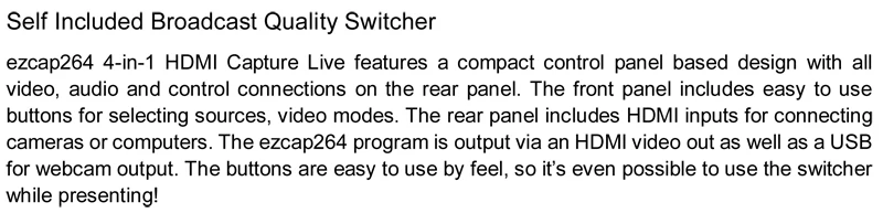 Ezcap264 4x1 HDMI multivisor interruptor de 4 canales HD 1080P 60fps USB 3,0 tarjeta de captura de vídeo caja de grabación de juegos PC transmisión en vivo