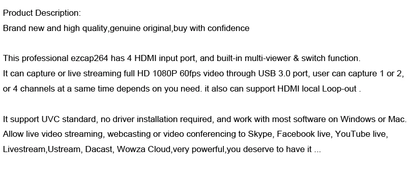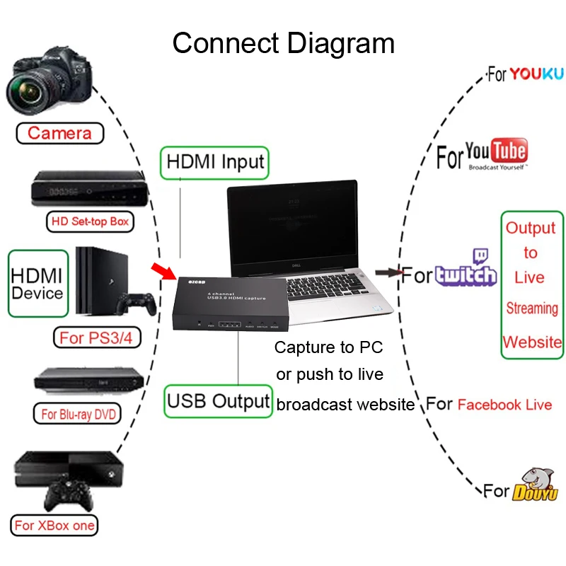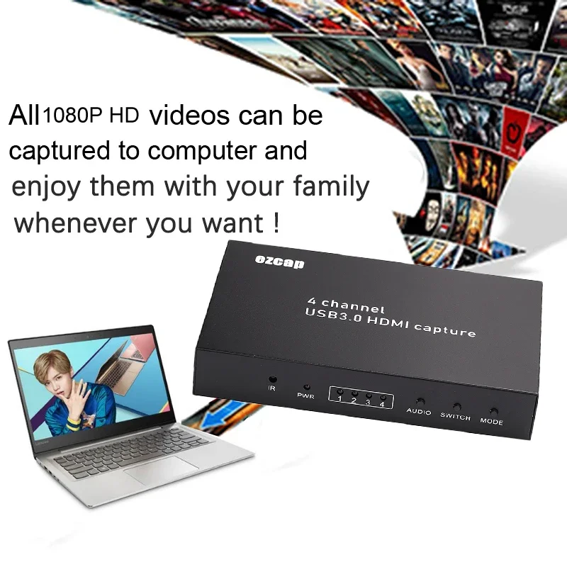 4 canales 4x1 HDMI Multi-Viewer y USB 3,0 HDMI Tarjeta de captura de video 2 en 1 Live Streaming Box, puede usarlo como desee, muy potente