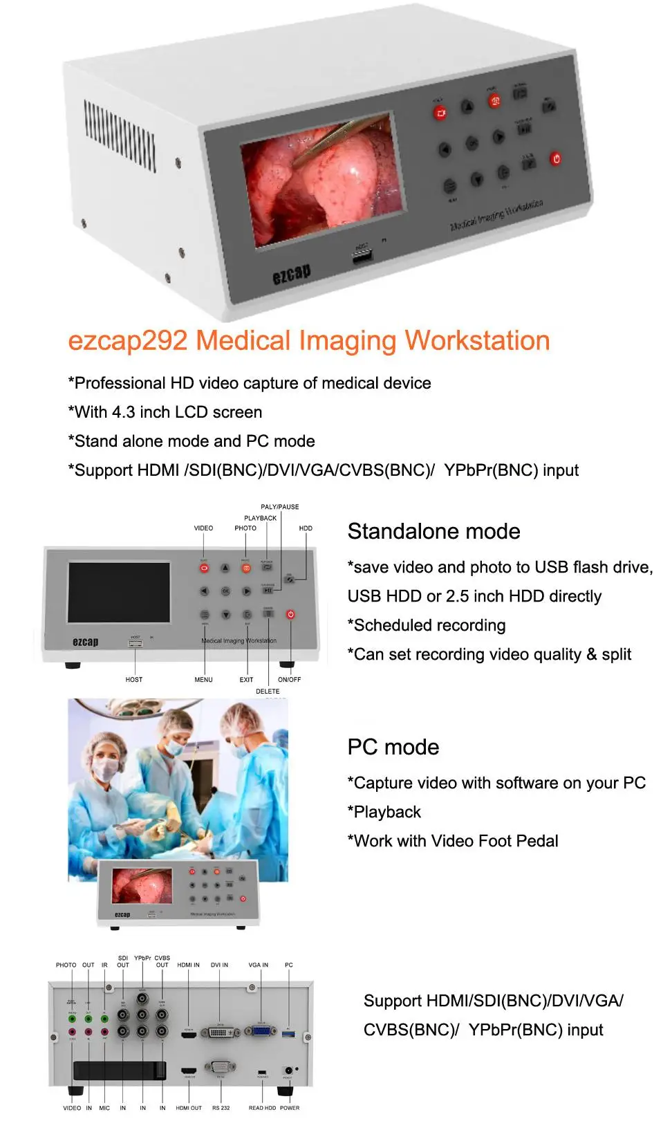 Comprar Ezcap292 Estación de trabajo de imágenes médicas Grabador de vídeo médico DVI VGA HDMI Vídeo compuesto (BNC) Tarjeta de captura de vídeo YPBPR