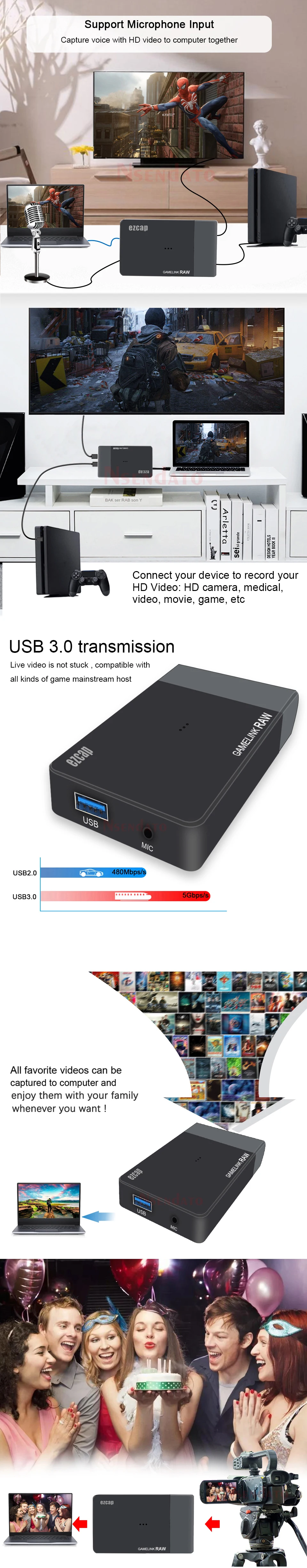 EZCAP321A USB3.0 HD captura de vídeo 1080P 4K HD a USB 3,0 tarjeta de captura de vídeo de juegos transmisión en vivo con micrófono para XBOX PS4