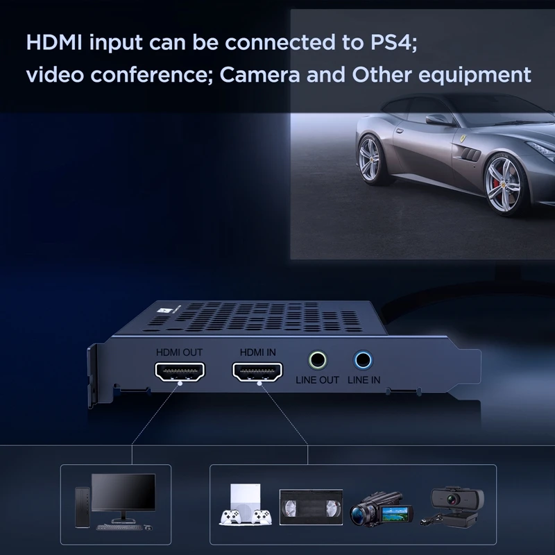 - Entrada y paso HDMI 2160p30, 1080p120 y 1440p60. - Grabación 1080p120, 2160p30 y 1440p60.Formato de vídeo RGB en color real hasta 1080p30. - Latencia inferior a 50 ms. - Estándar UVC, no se necesita instalación manual del controlador.Admite la mayoría de los softwares de captura de vídeo de terceros. - Velocidad súper rápida PCIe Gen2. - Con puerto de entrada y salida de línea. - Con colorido indicador de respiración.