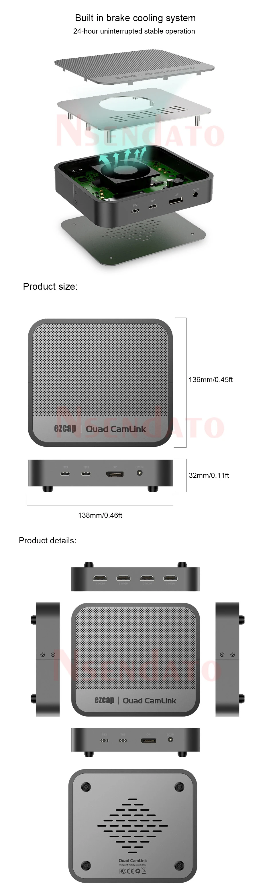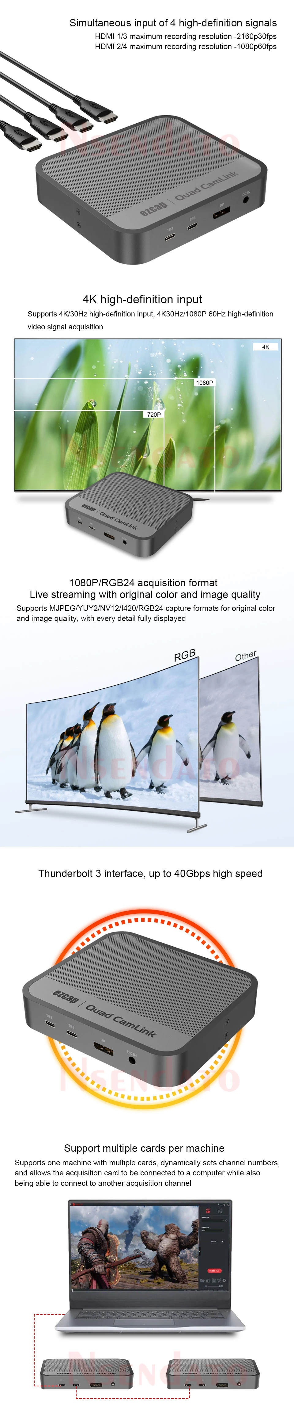 Ezcap362 Quad CamLink 4 canales Thunder HDMI Tarjeta de captura de videojuegos HDMI 4K 30fps RGB24 1080P60 Grabador para videocámara Cámara DSL