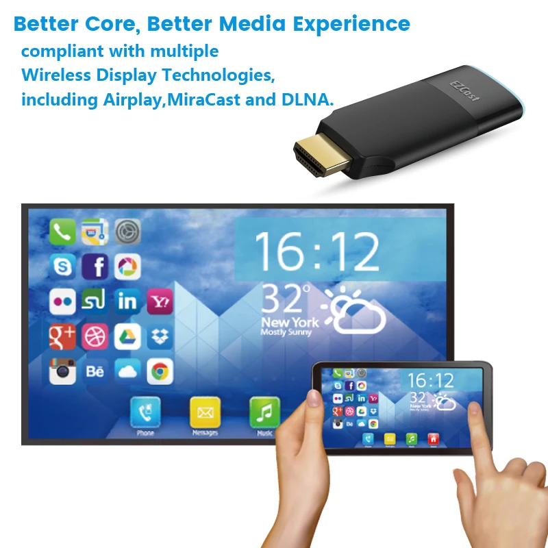 Comprar Ezcast adaptador WIFI inalámbrico 5G, Dongle de pantalla, espejo de pantalla DLNA, convertidor de vídeo para Iphone 11, 12, teléfono Android a TV